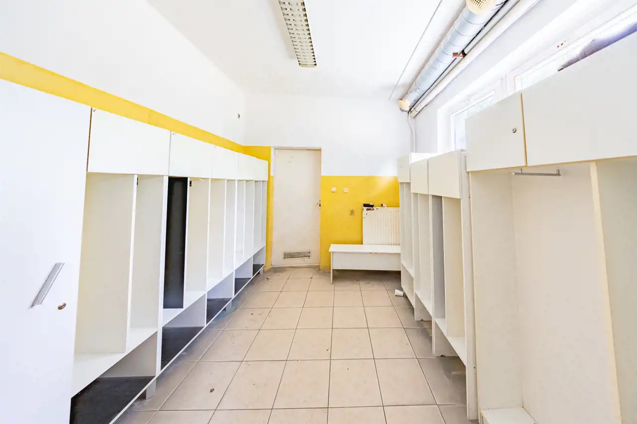 - na obiekcie znajduje się kilka toalet oraz szatnie z podziałem na damskie i męskie. Szatnie połączone są z łazienkami z kilkoma prysznicami w każdej. Do zespołu pomieszczeń socjalnych przynależy także kuchnia/stołówka oraz pomieszczenie gospodarcze,