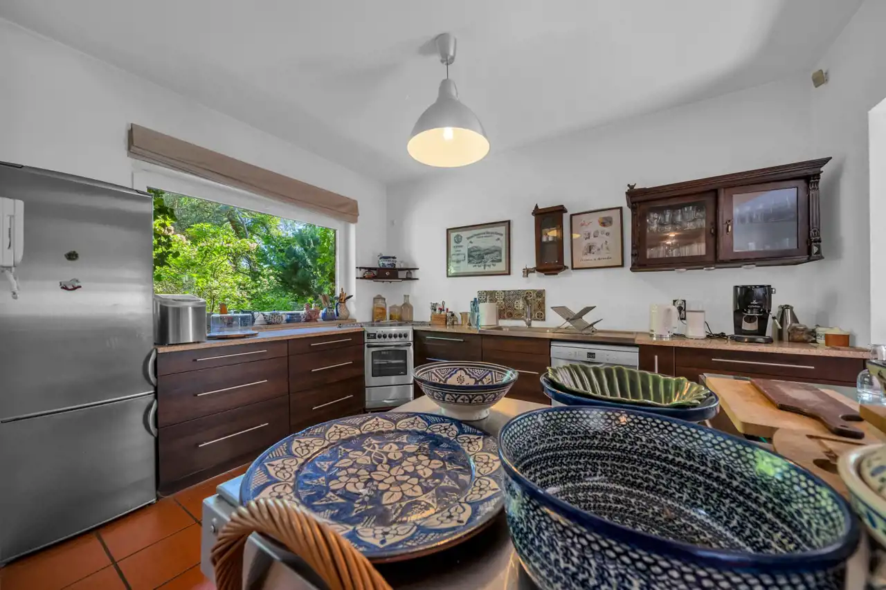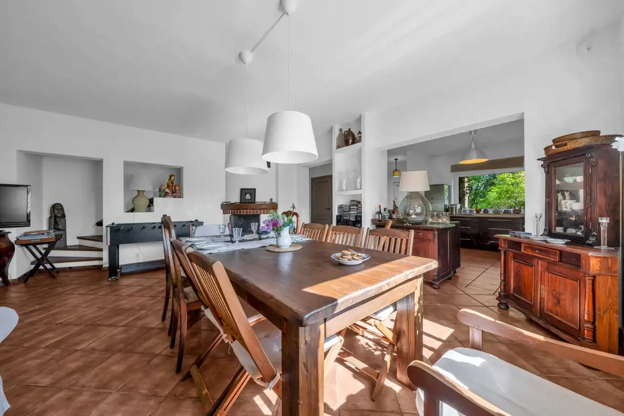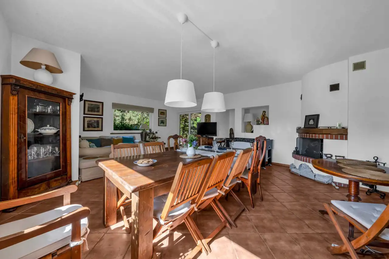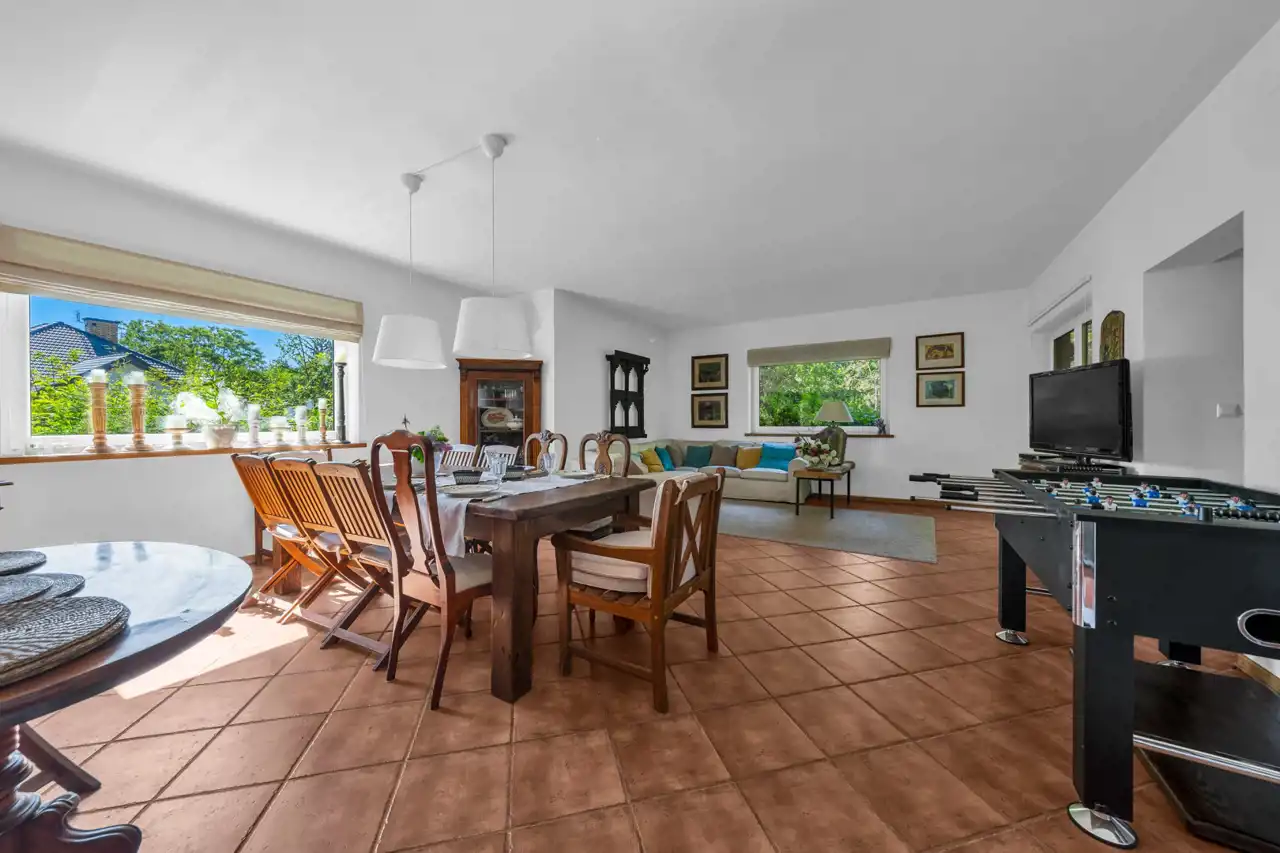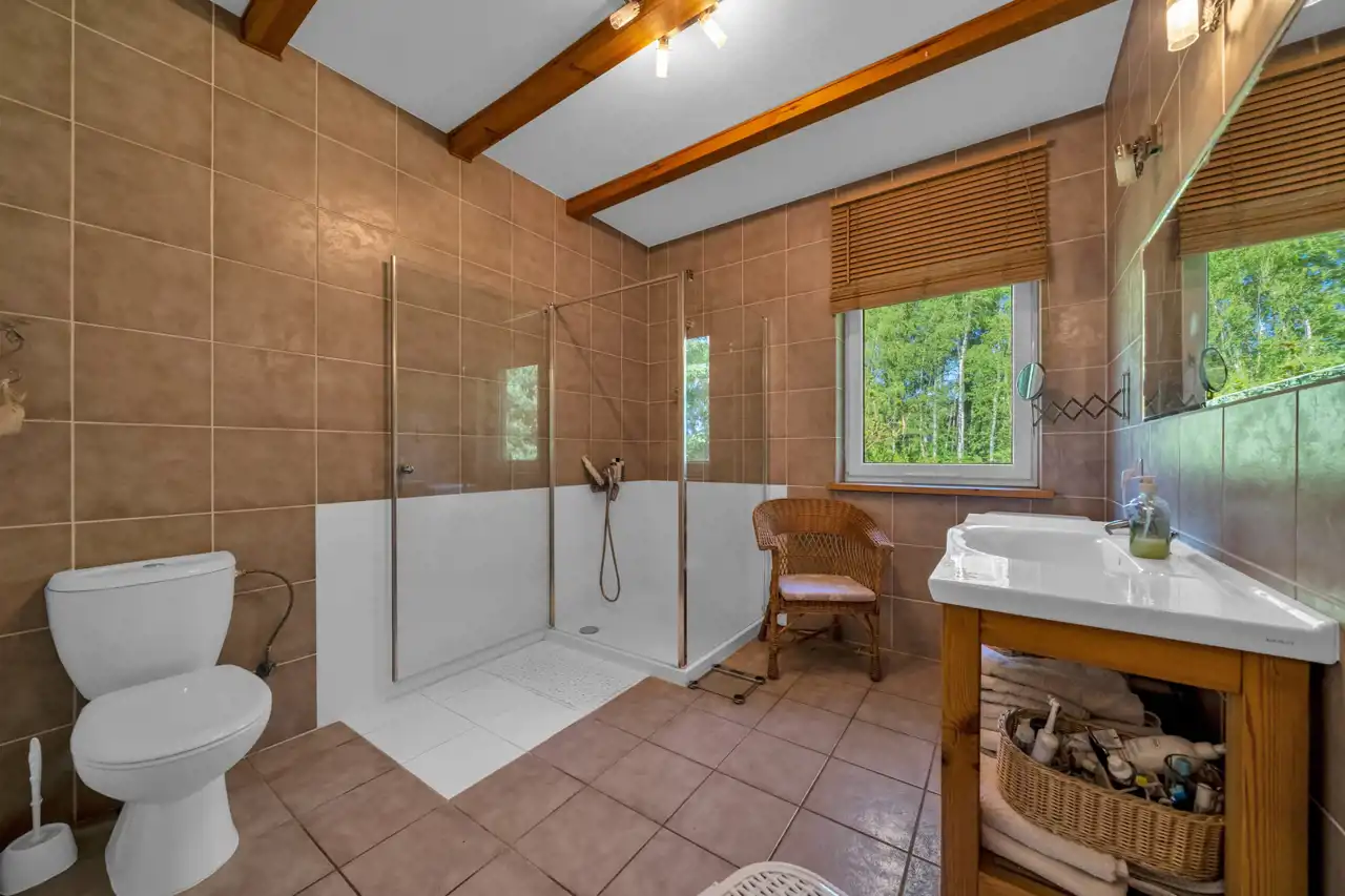 Stan domu, do wprowadzenia ewentualnego odświeżenia. Super układ pomieszczeń, dużo światła i przestrzeni. Prawie 40m salon z częściowo otwartą kuchnią oraz wyjściem na pięknie zagospodarowany taras, oraz bardzo dużą zagospodarowaną roślinnością działkę. Układ umożliwia wstawienie drzwi w korytarzu i tym samym oddzielenie części dziennej od części gdzie znajdziemy sypialnię, gabinet, łazienkę i garderobę. Piękne, duże okna bez szprosów, dzięki którym w domu jest dużo światła. Klimatyczny kominek w starym stylu, który w chłodne dni umili czas spędzany w salonie, a jednocześnie dodatkowo ogrzeje dom. Ogrzewanie podłogowe na całym parterze, grzejniki w pokojach i łazience.
