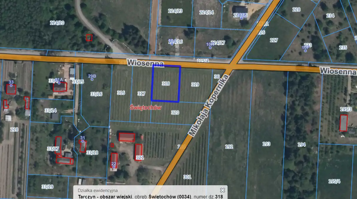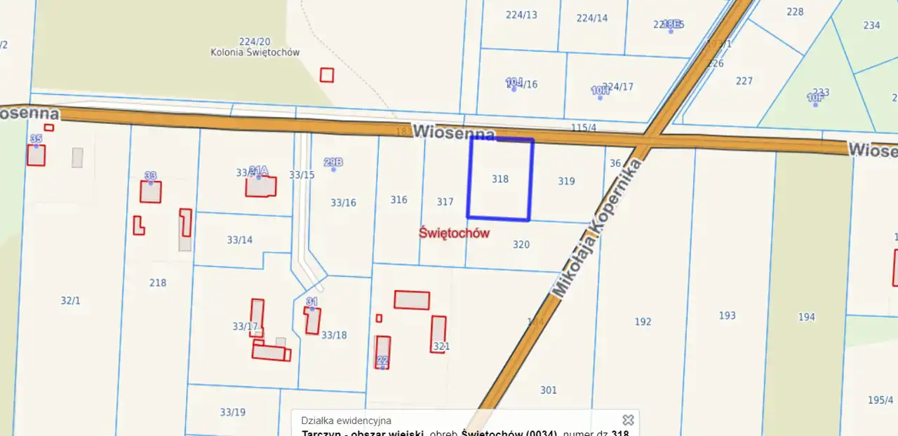 Dostępne są sąsiednie działki - 319 (1290m2) oraz 320 (1227m2)
