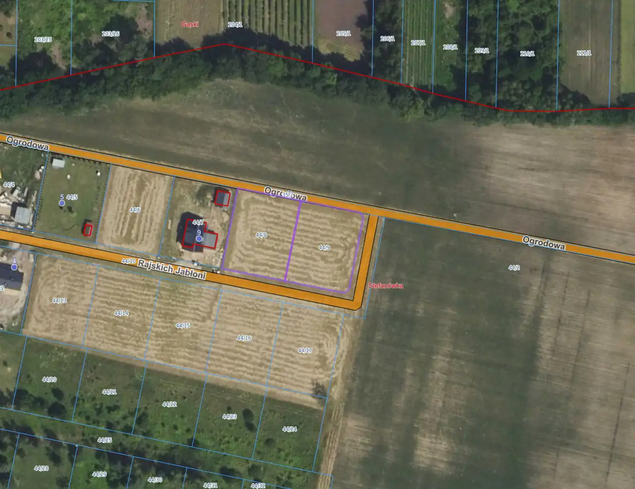 Numery ewidencyjne 44/8 lub 44/9