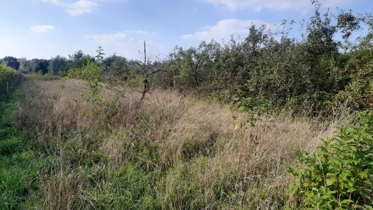 Na części pod zabudowę jednorodzinną znajdują się stare drzewa owocowe do wycinki.