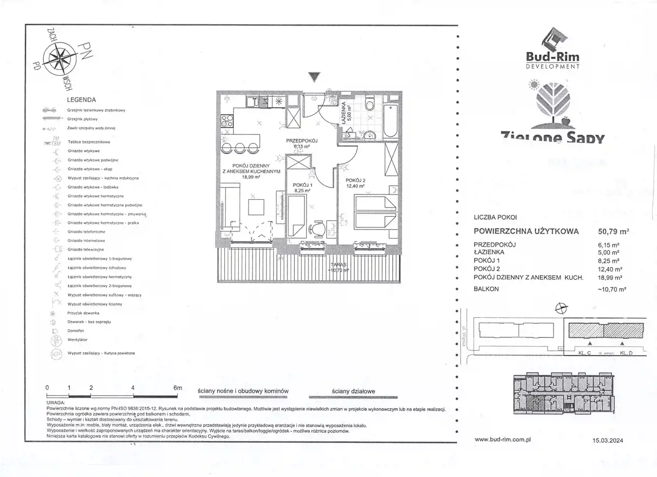 - Składa się z salonu z aneksem kuchennym, dwóch sypialni, przedpokoju. Posiada duży 10,7m2 balkon.