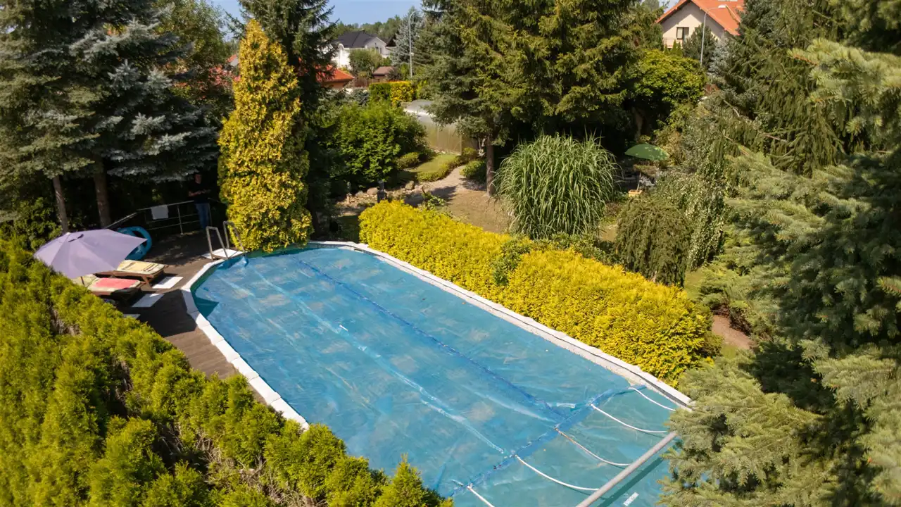 - W pełni zagospodarowany ogród: bujne nasadzenia, urokliwe oczko wodne, a także duży basen o wymiarach 5x10 metrów gwarantują niezliczone godziny zabawy i relaksu.