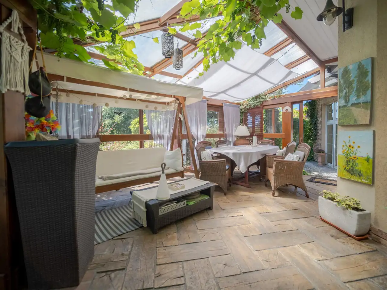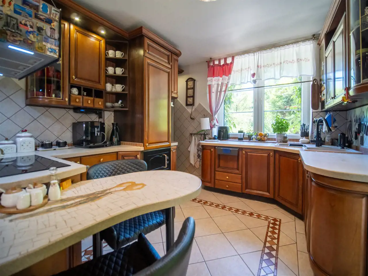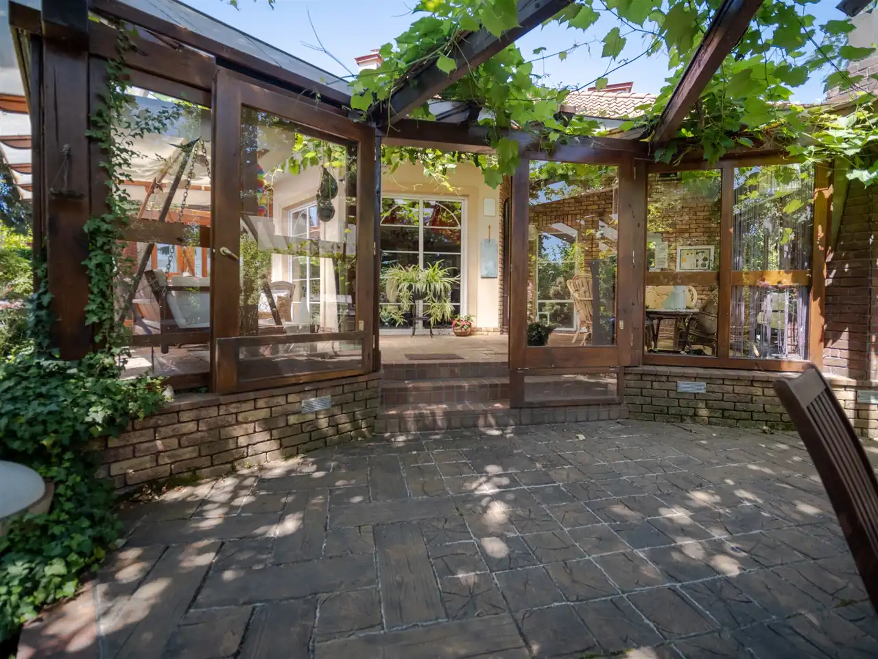 Z kuchni bezpośrednio wychodzi się do spektakularnego, dużego ogrodu zimowego z kominkiem, który stanowi idealne miejsce do relaksu przez cały rok, niezależnie od pogody. To prawdziwy raj dla miłośników spędzania czasu na świeżym powietrzu, oferujący: