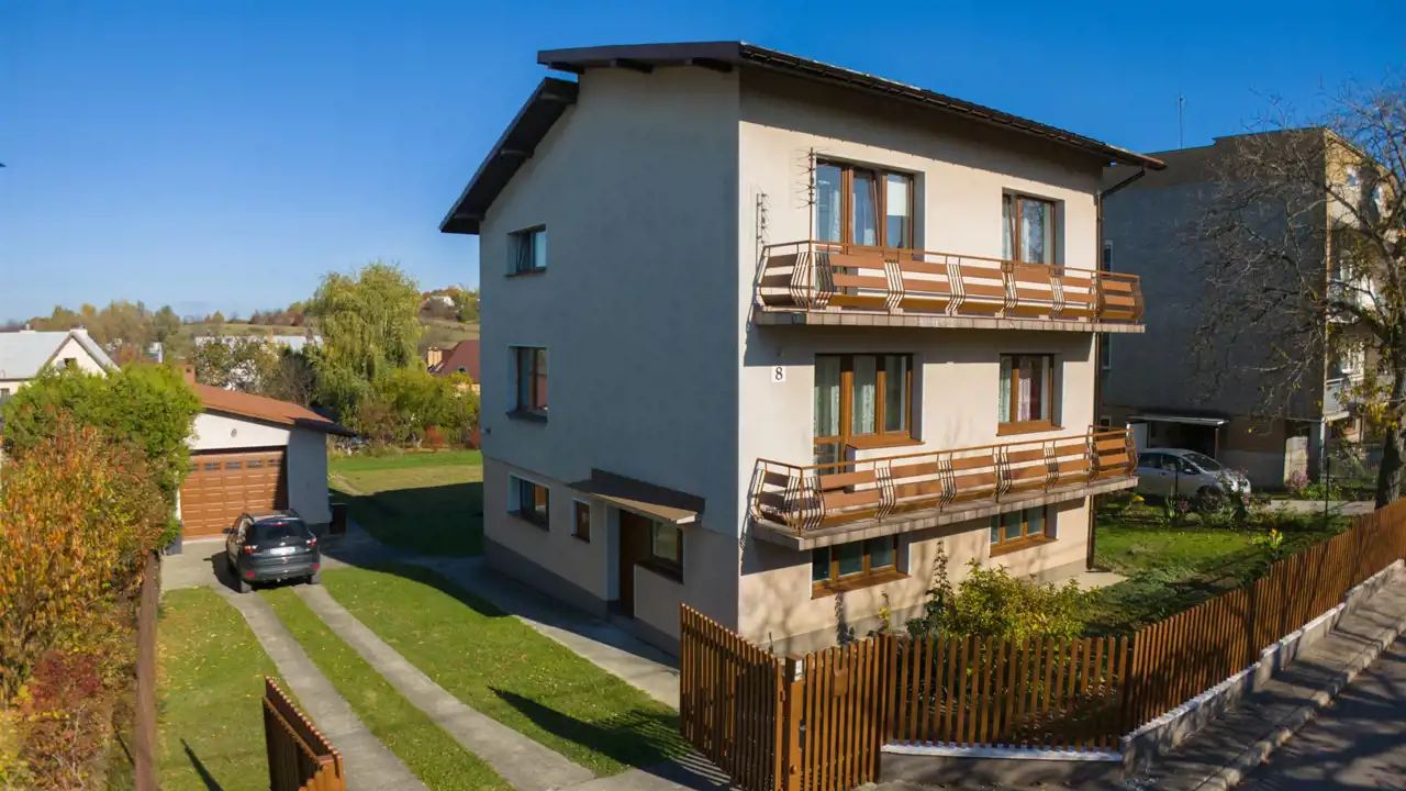- Na drugim piętrze znajduje się mieszkanie trzypokojowe.