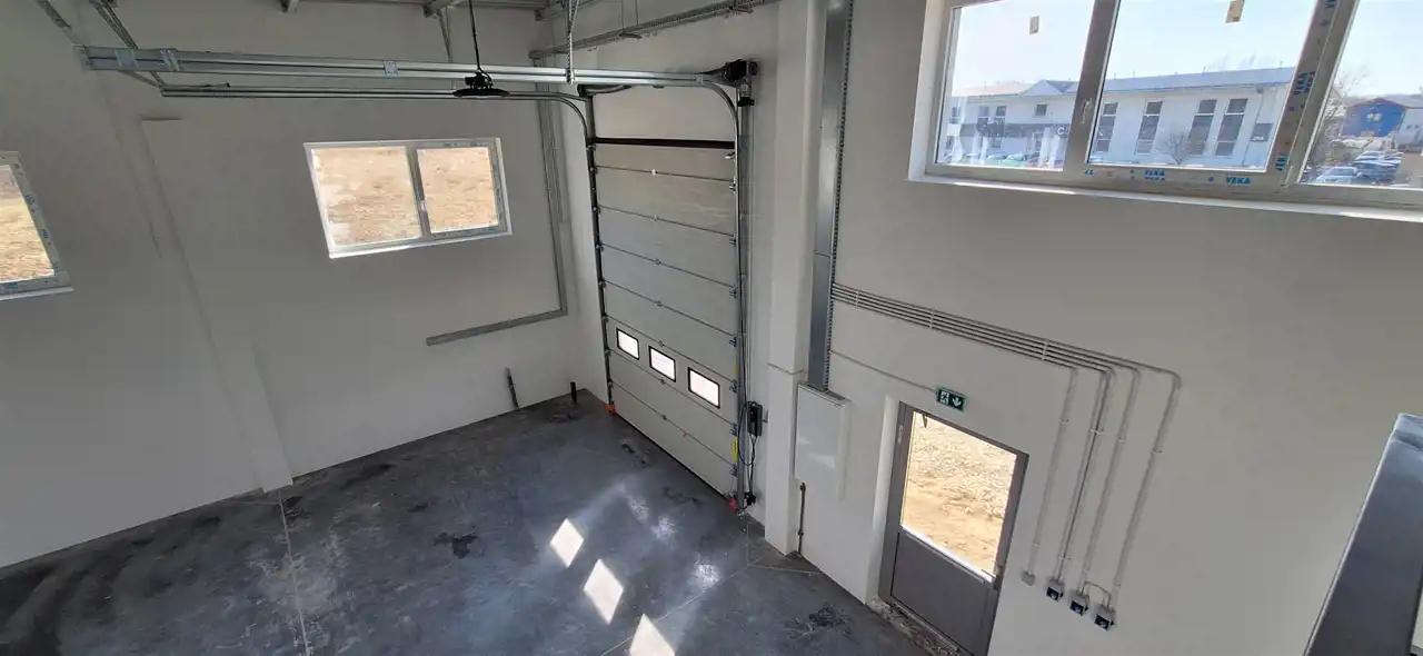 Budynek o łącznej pow. użytkowej 1277,00 m2 składa się z 3 segmentów z bramami garażowymi z poziomu 0 :
