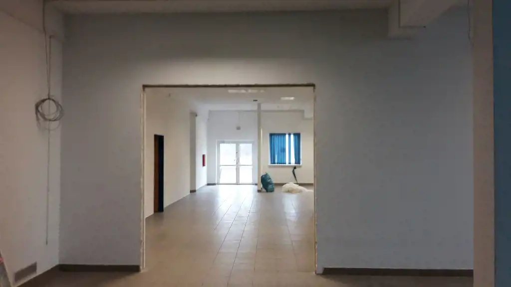 Budynek ma wewnątrz 4m wysokości, konstrukcji stalowej, ściany z płyty warstwowej z ociepleniem, posadzka w budynku przemysłowa.