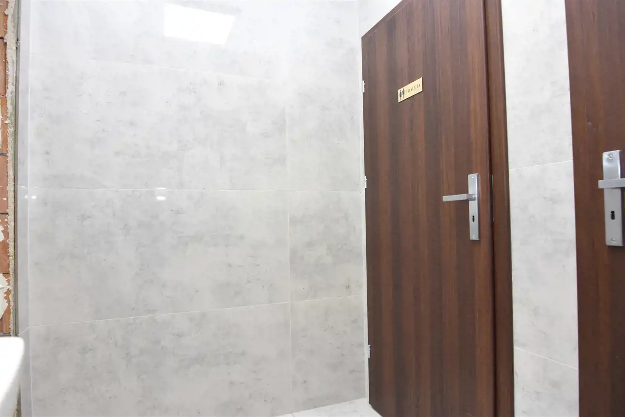 funkcjonalny układ: 2 pomieszczenia, Sala główna + Pomieszczenie socjalne + wc + łazienka + prysznic ( aktualnie pełni funkcje pomieszczenia gospodarczego ) + klatka schodowa
