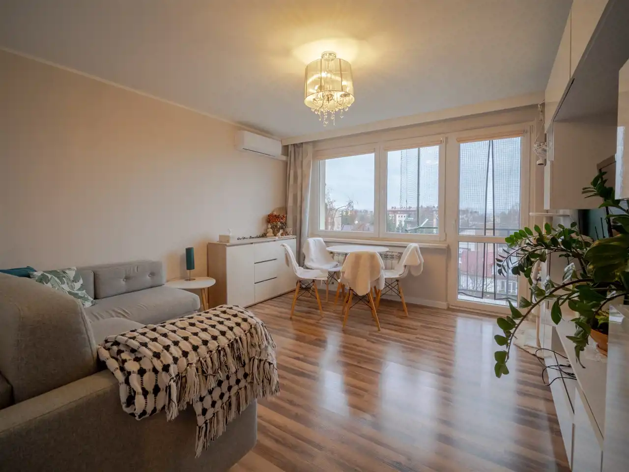 Mieszkanie przeszło generalny remont – wymieniono wszystkie instalacje, co gwarantuje bezpieczeństwo i komfort użytkowania przez długie lata. Wnętrze jest nowoczesne i gotowe do zamieszkania bez konieczności ponoszenia dodatkowych nakładów finansowych. Zamontowana klimatyzacja znacząco podnosi komfort w cieplejsze dni, a okna PCV zapewniają dobrą izolację termiczną i akustyczną.