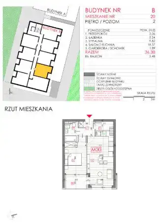 - Charakterystyka mieszkania 36.38 m2, 2 pokoje