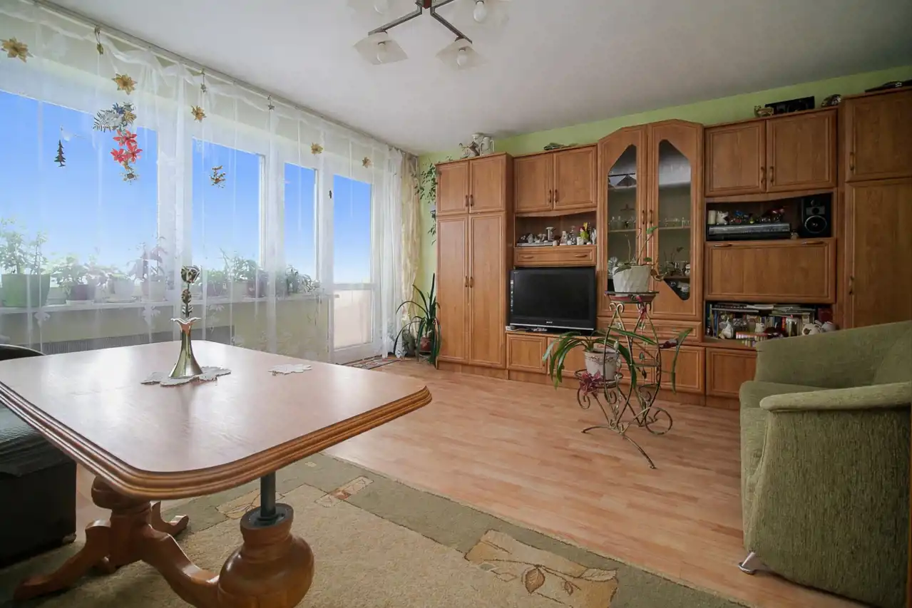 Wnętrze mieszkania zostało zaprojektowane z myślą o wygodzie codziennego życia. Składa się z salonu z wyjściem na balkon, pokoju, jasnej kuchni oraz łazienki. W pokojach na podłogach położono panele, tworzące ciepłą i przytulną atmosferę. Z wysokiego piętra rozpościera się atrakcyjny widok na okolicę, zapewniający poczucie przestrzeni, prywatności oraz doskonałe doświetlenie wnętrz przez cały dzień.