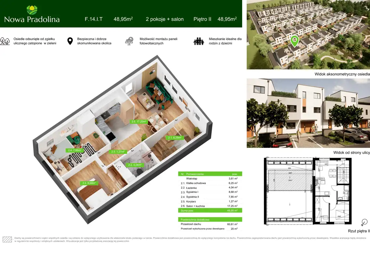 - Nowoczesne, ogrodzone i monitorowane osiedle z oświetleniem i strefą rekreacyjną nad strumieniem