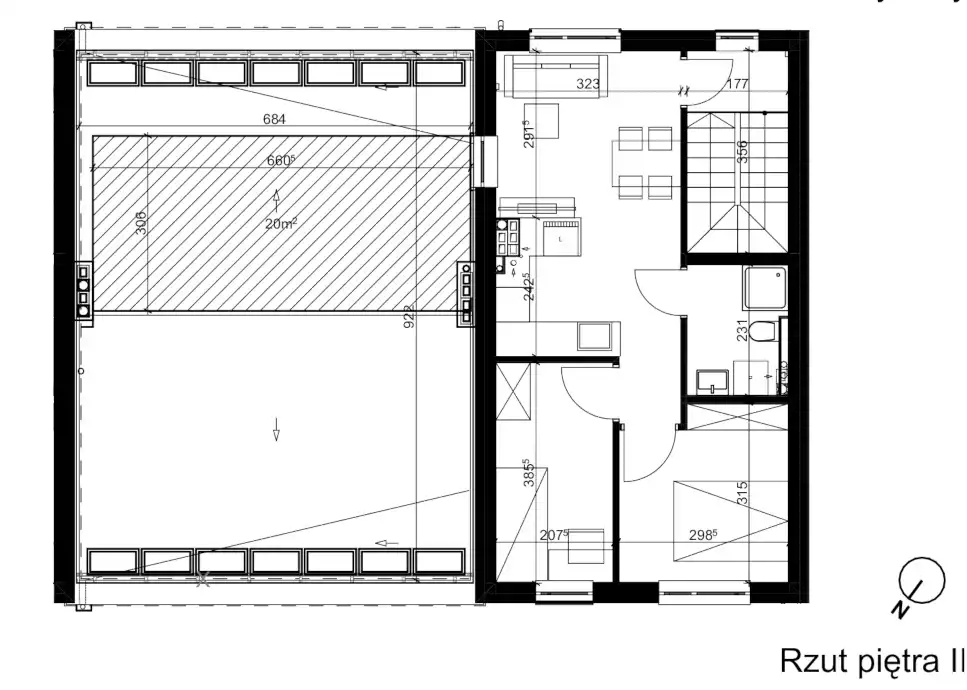 Rozkład pomieszczeń:- Salon z aneksem kuchennym: 17,25 m²