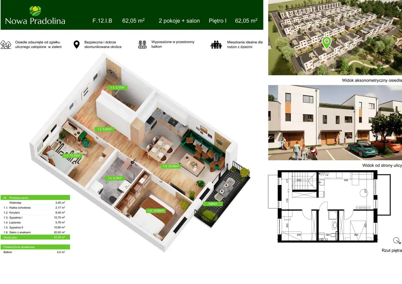 - Charakterystyka mieszkania 62.05 m2, 3 pokoje