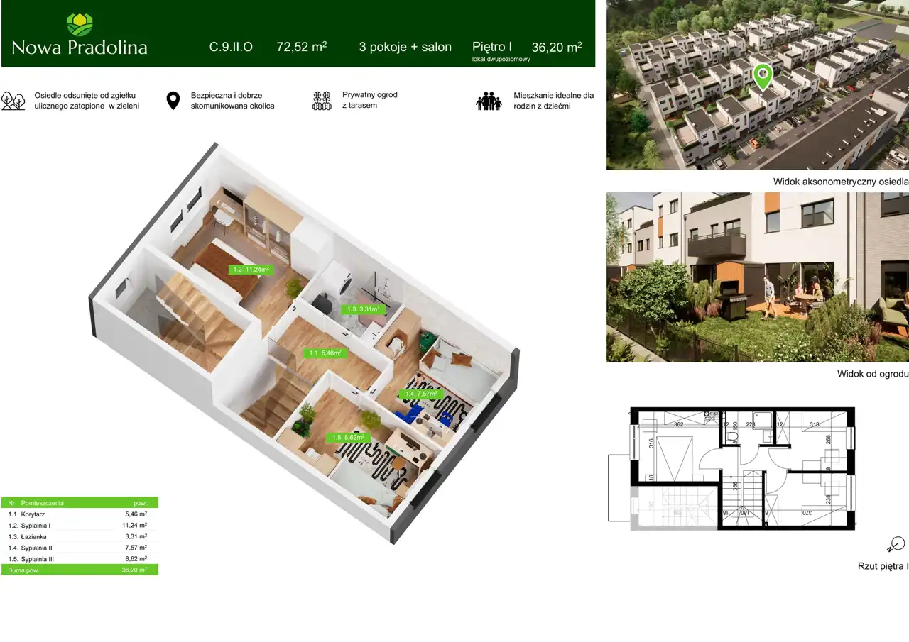Idealne dla rodziny, z wygodnym układem pomieszczeń i prywatną zieloną przestrzenią