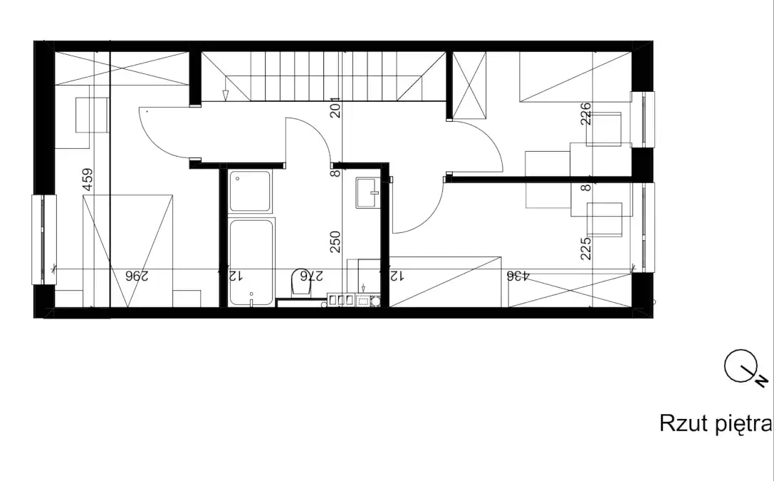 - Trzy sypialnie: 12,25 m², 9,61 m², 7,13 m²