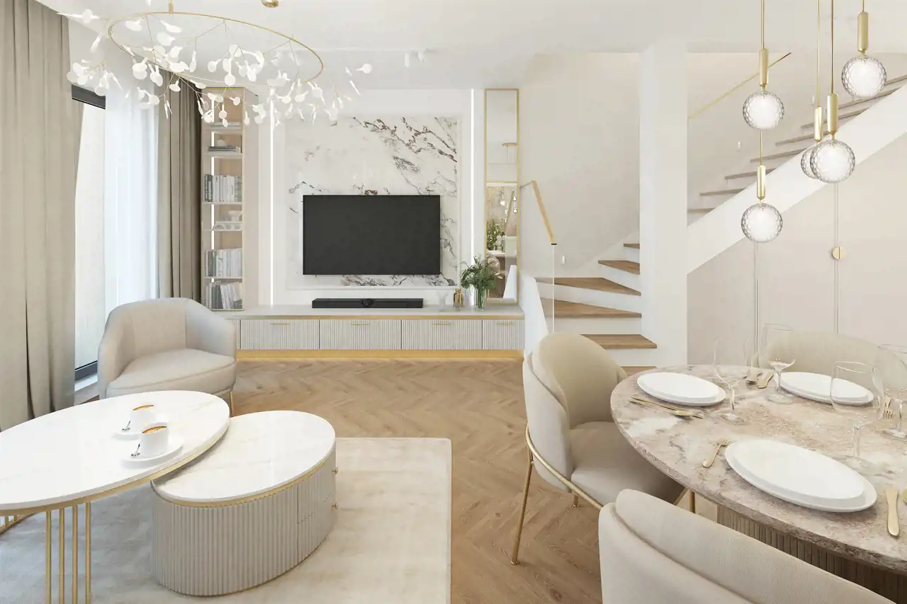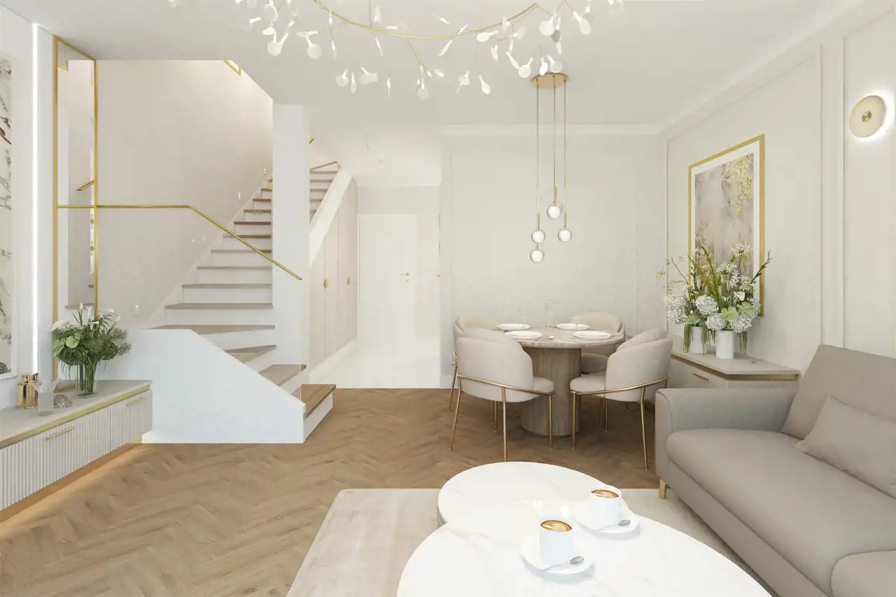 - 132 mieszkania i domy w zabudowie szeregowej (pow. 48–81 m², 3–4 pokoje, także dwupoziomowe).