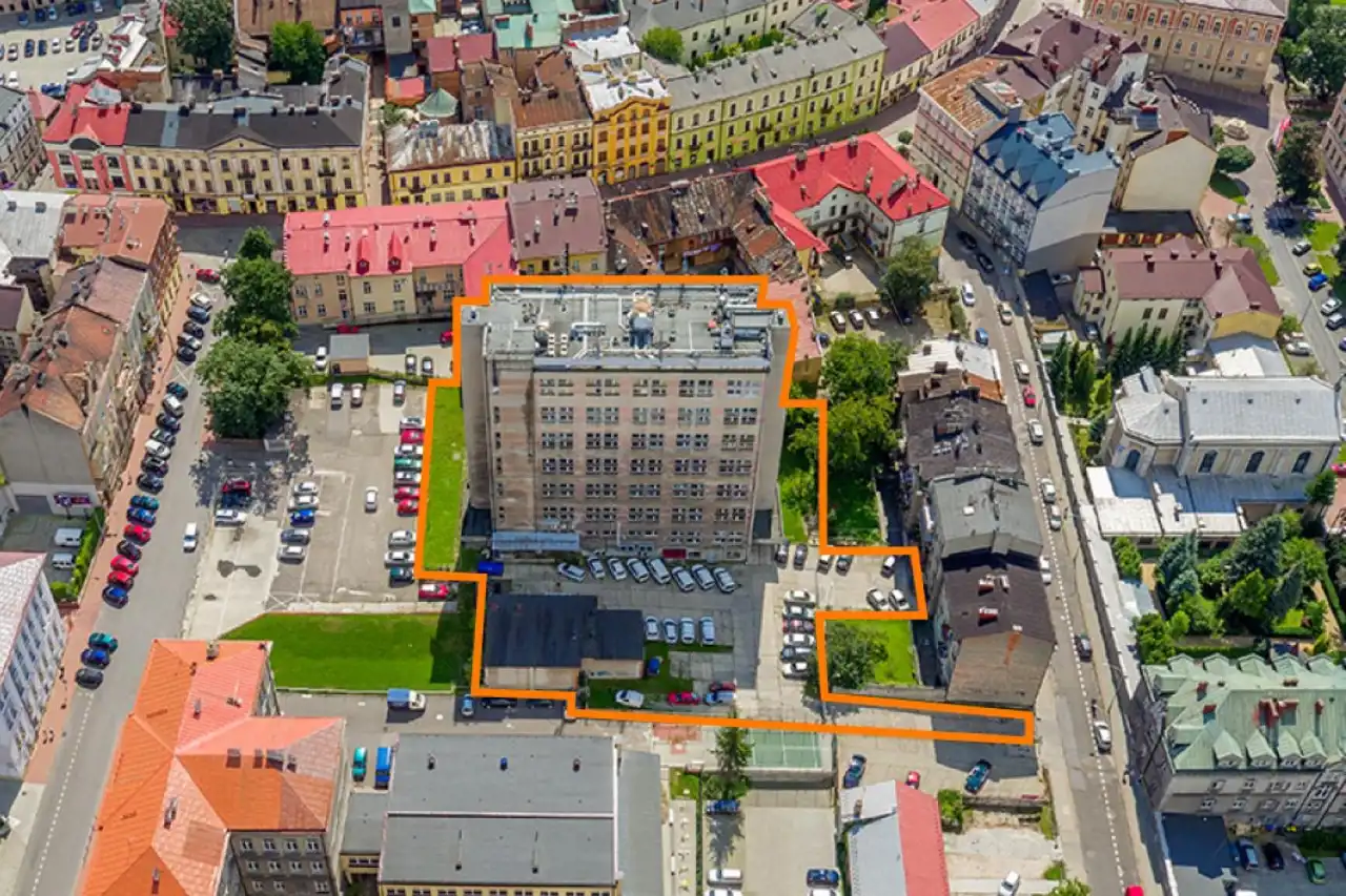 Na ogrodzonym terenie znajduje się budynek biurowy o powierzchni użytkowej – 4806,50 m2 oraz agregatornia - 158,4 m2 . Obiekt biurowy posiada 7 kondygnacji naziemnych i 2 podziemne (piwnica). Wewnątrz mieszczą się różnorodne powierzchnie (m.in. w układzie gabinetowym, większe pokoje, sale konferencyjne), pomieszczenia socjalne, gospodarcze i techniczne. Do dyspozycji dwie windy, w tym jedna towarowa. Nieruchomość do adaptacji według własnych potrzeb na różnorodne cele.