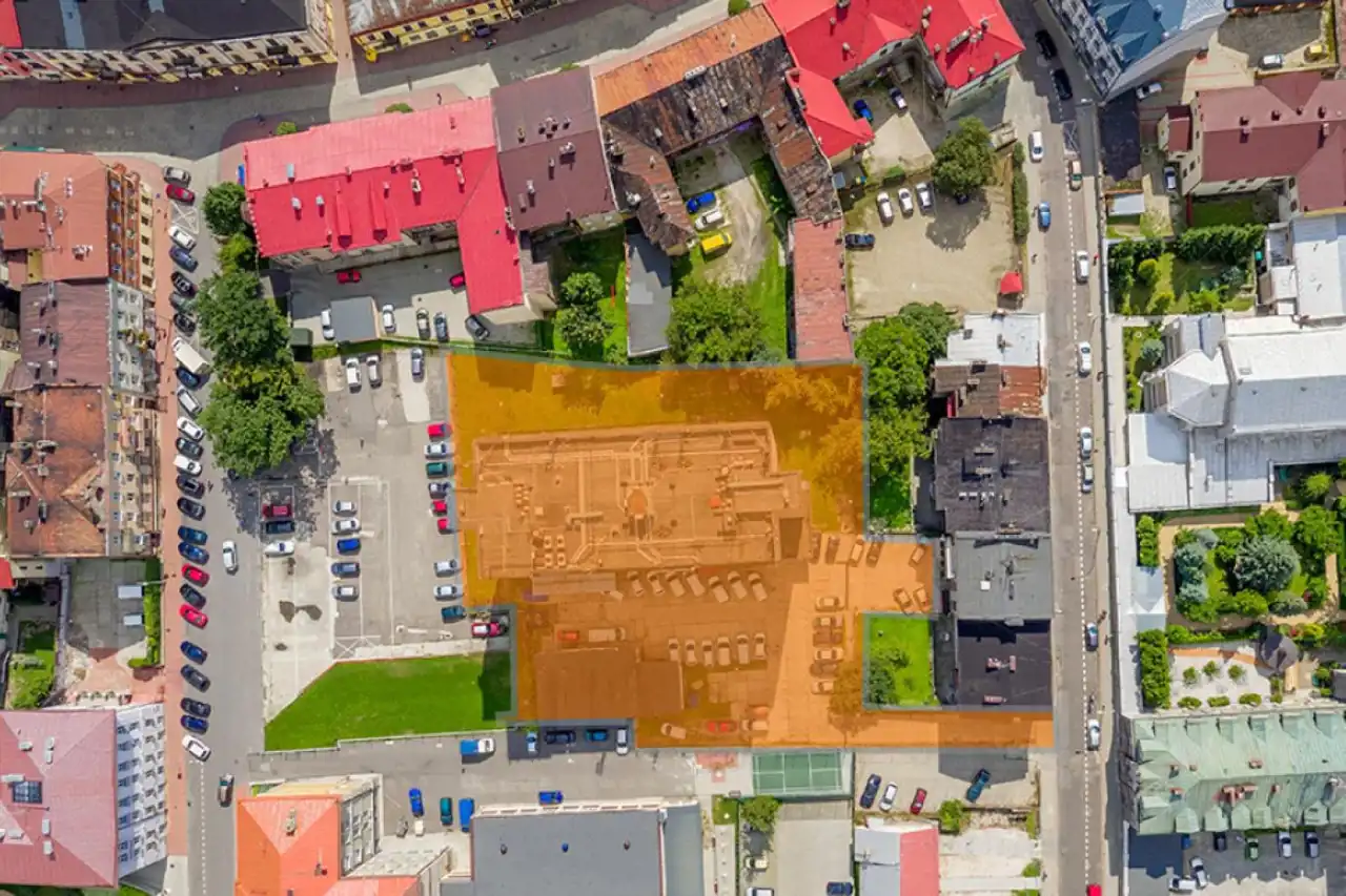 Duży budynek w centrum miasta, w pobliżu Rynku.