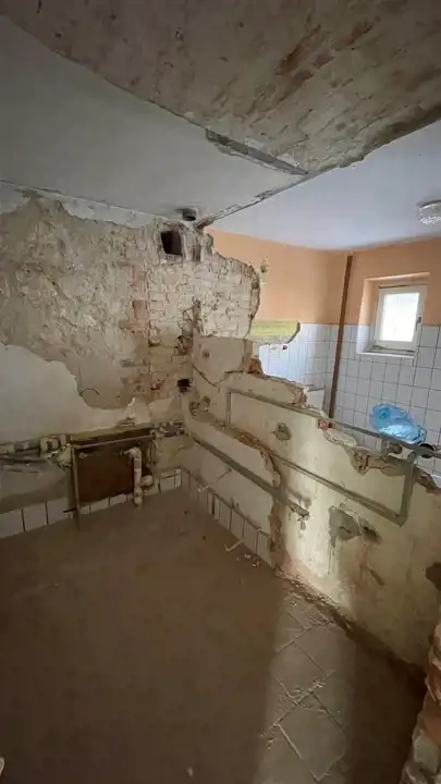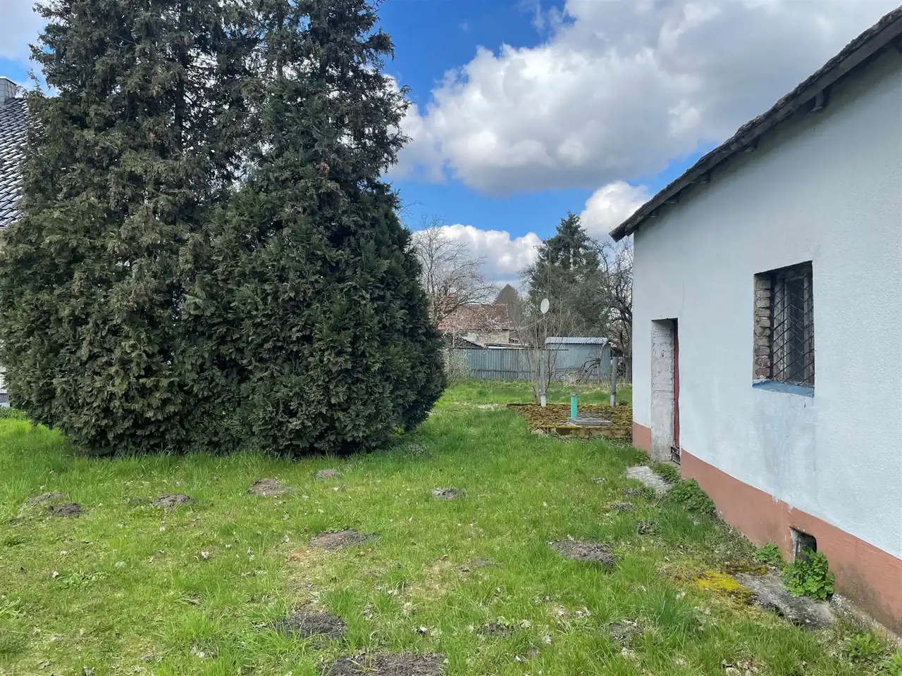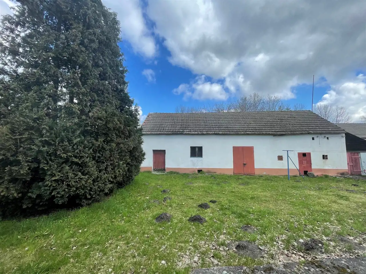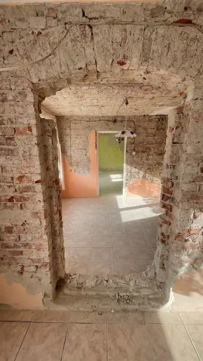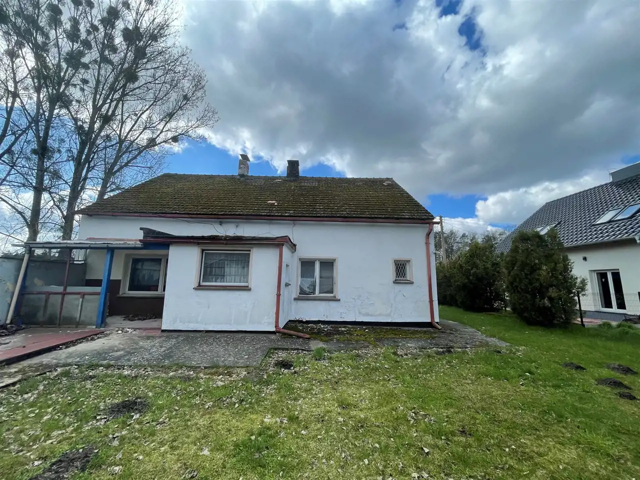 Budynek jednokondygnacyjny, w trakcie remontu (częściowo skute stare tynki, wyburzona ścianka działowa) z oknami o profilach PCV, dachem dwu spadowym krytym dachówką cementową. Nieruchomość składa się z trzech pokoi, kuchni, łazienki oraz. Wysokie poddasze oraz budynki gospodarcze do zagospodarowania. W cenie nieruchomości znajduje się dachówka ceramiczna oraz niezbędny materiał do remontu dachu. Media: prąd, woda, gaz (wydana decyzja o przyłączeniu, planowane przyłączenie luty 2024), szambo na posesji