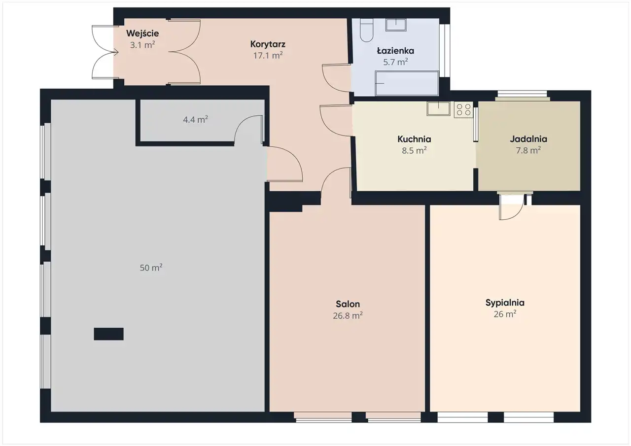 - pomieszczenie gospodarcze o pow. 4,4 m2