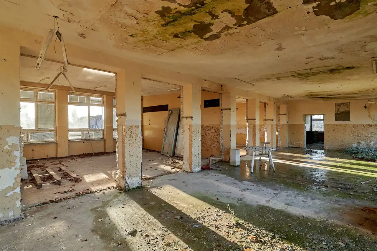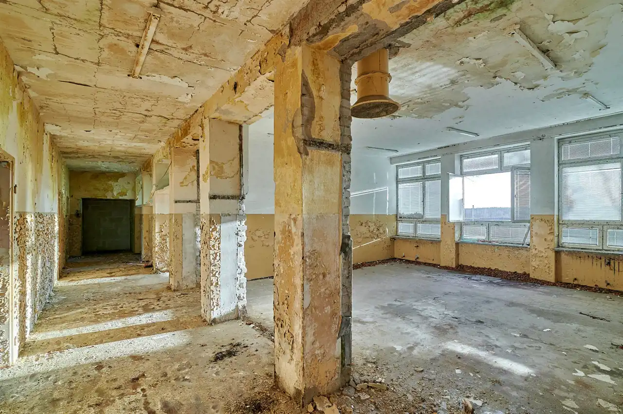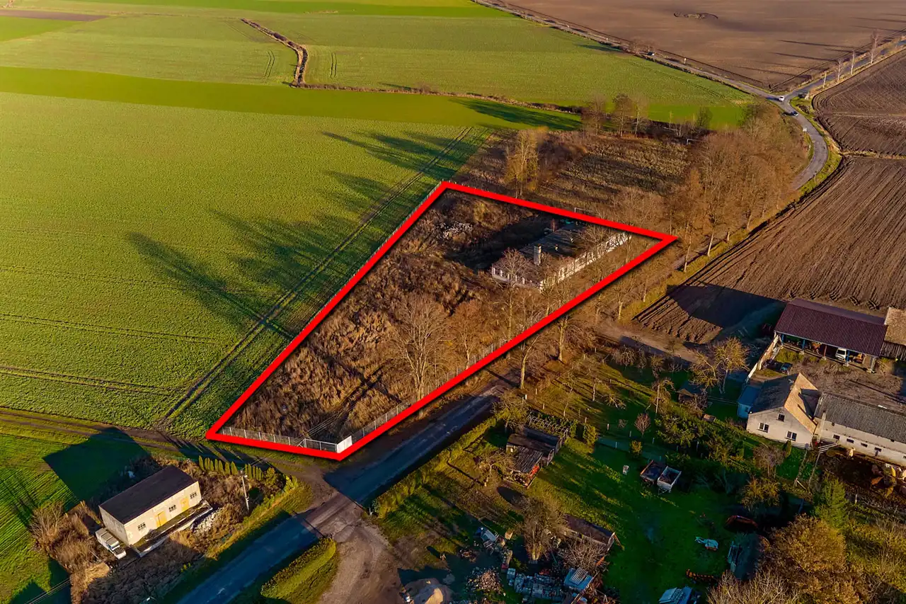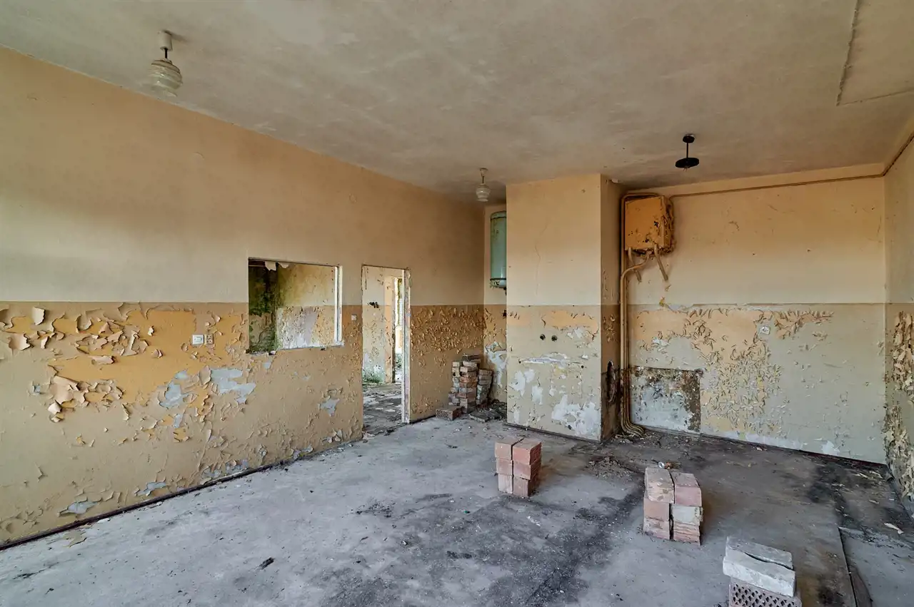 Obecnie na działce budynek o pow. 478m2, częściowo podpiwniczony. Wyburzona większość ścianek działowych.