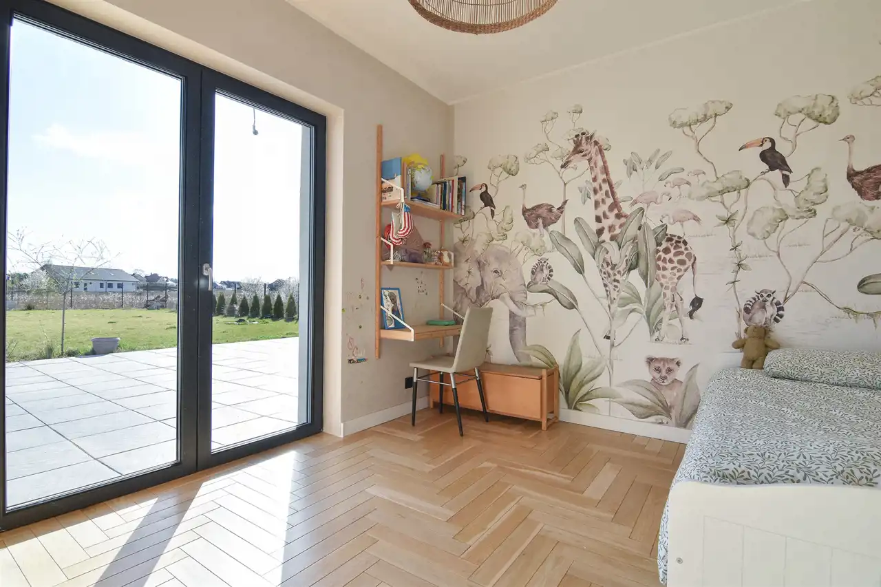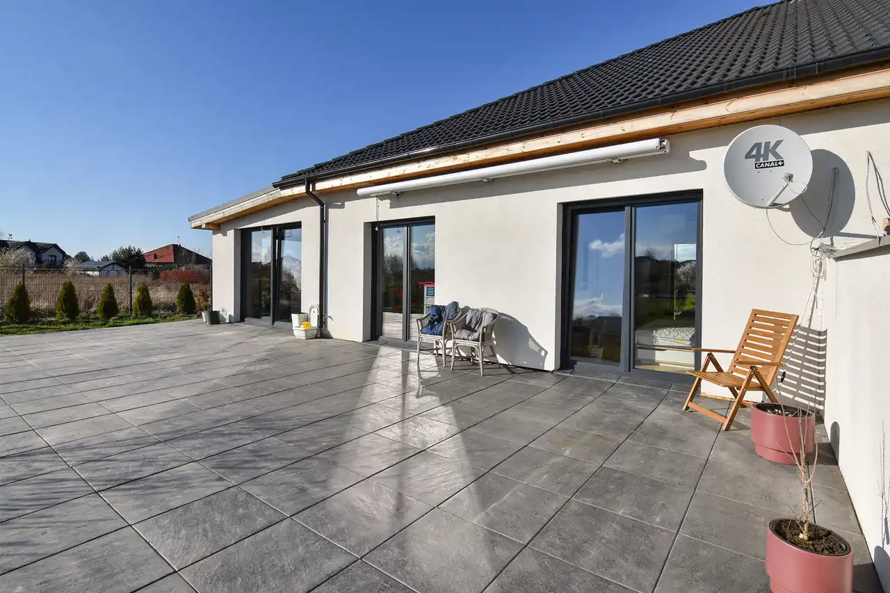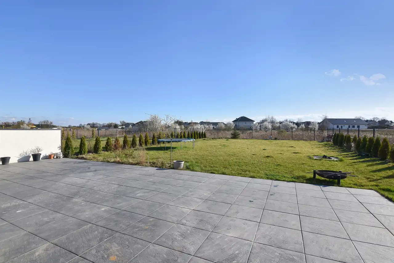 Jednak największym walorem tego pięknego domu jest bardzo duży taras otwarty na południowy zachód i zieloną przestrzeń. Działki sąsiadujące od tej strony z posesją nie są przeznaczone do zabudowy.
