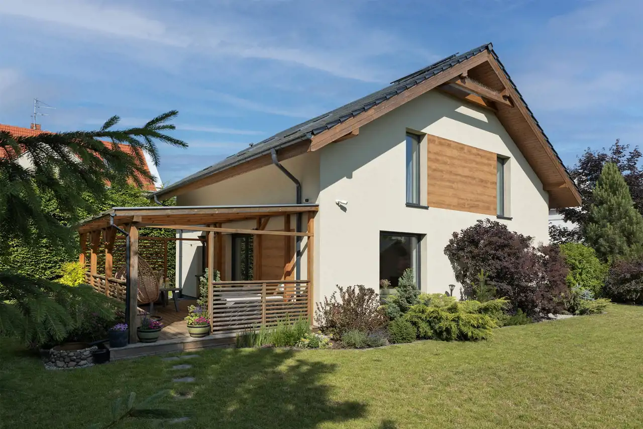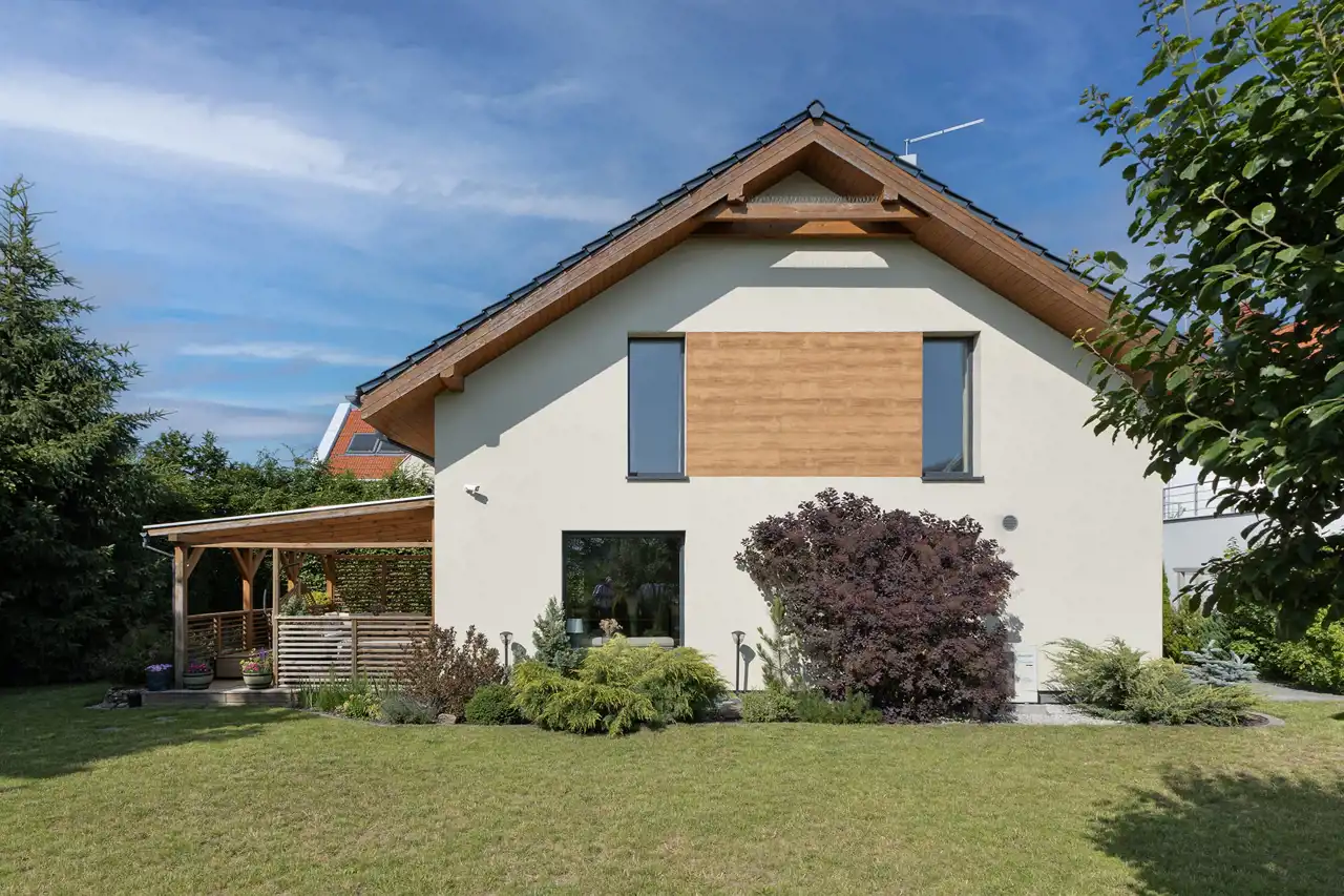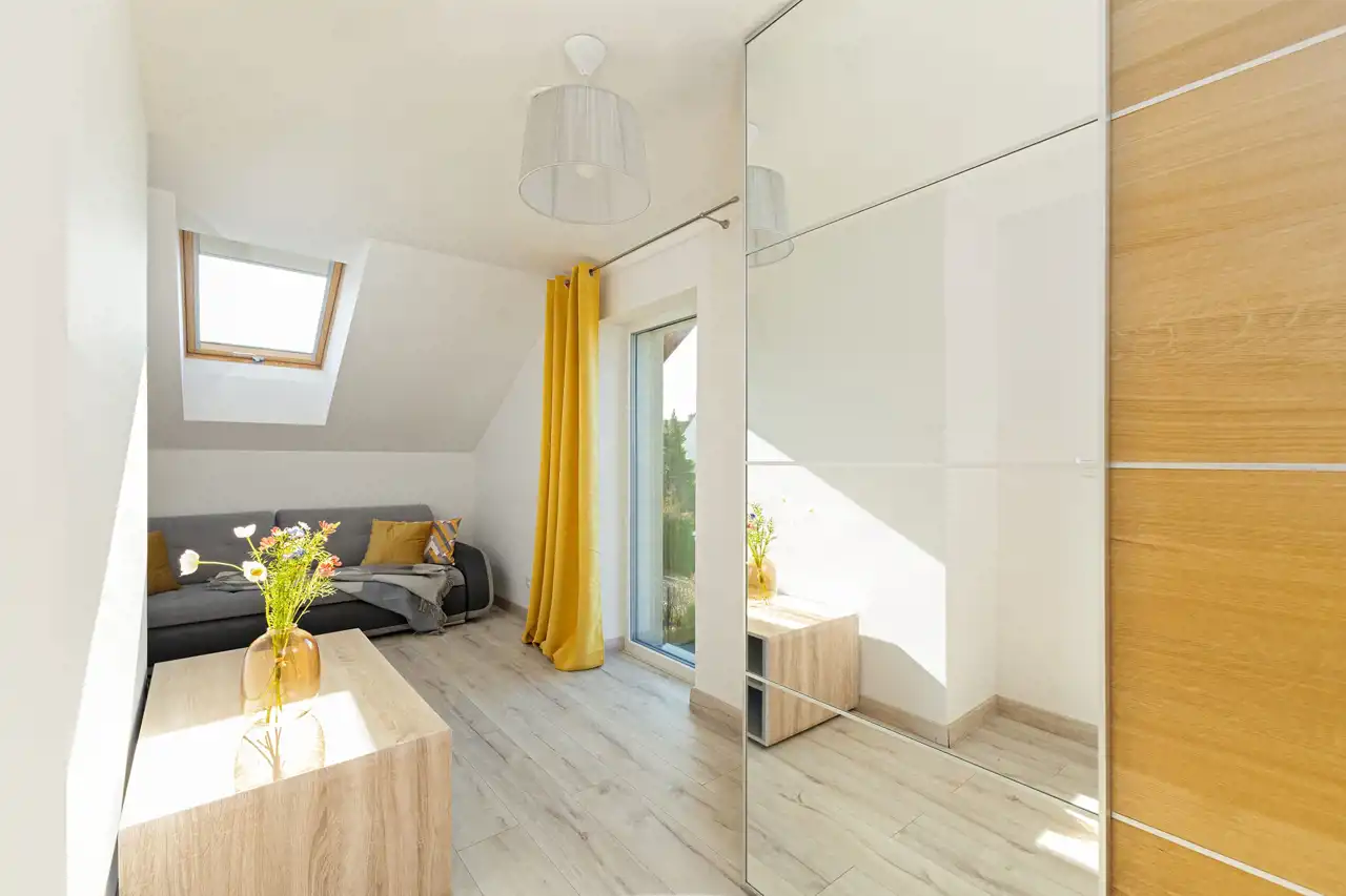 Zbudowany dla siebie w 2019 budynek wolnostojący o powierzchni 135.74 m² położony na działce o powierzchni 665 m2, na osiedlu gdzie dominuje zabudowa jednorodzinna.