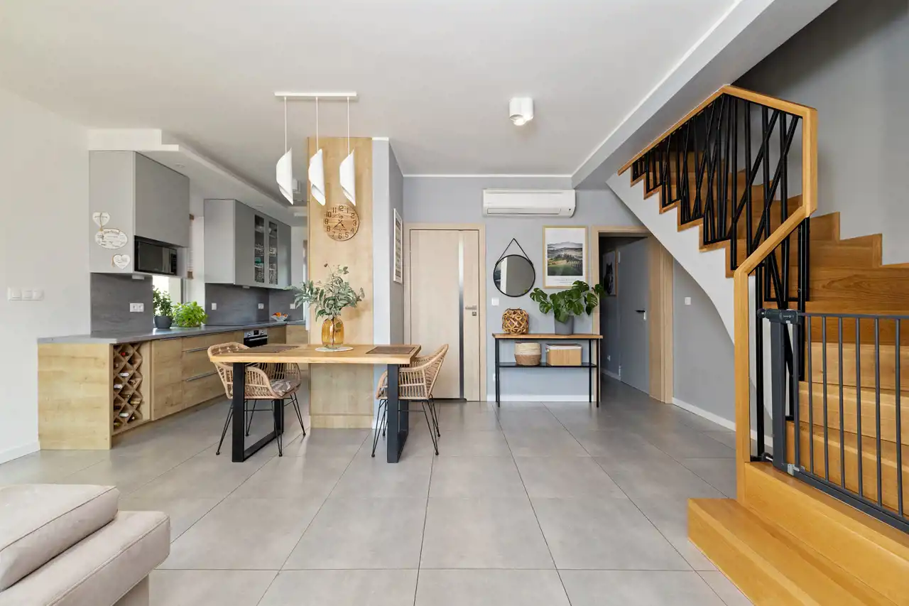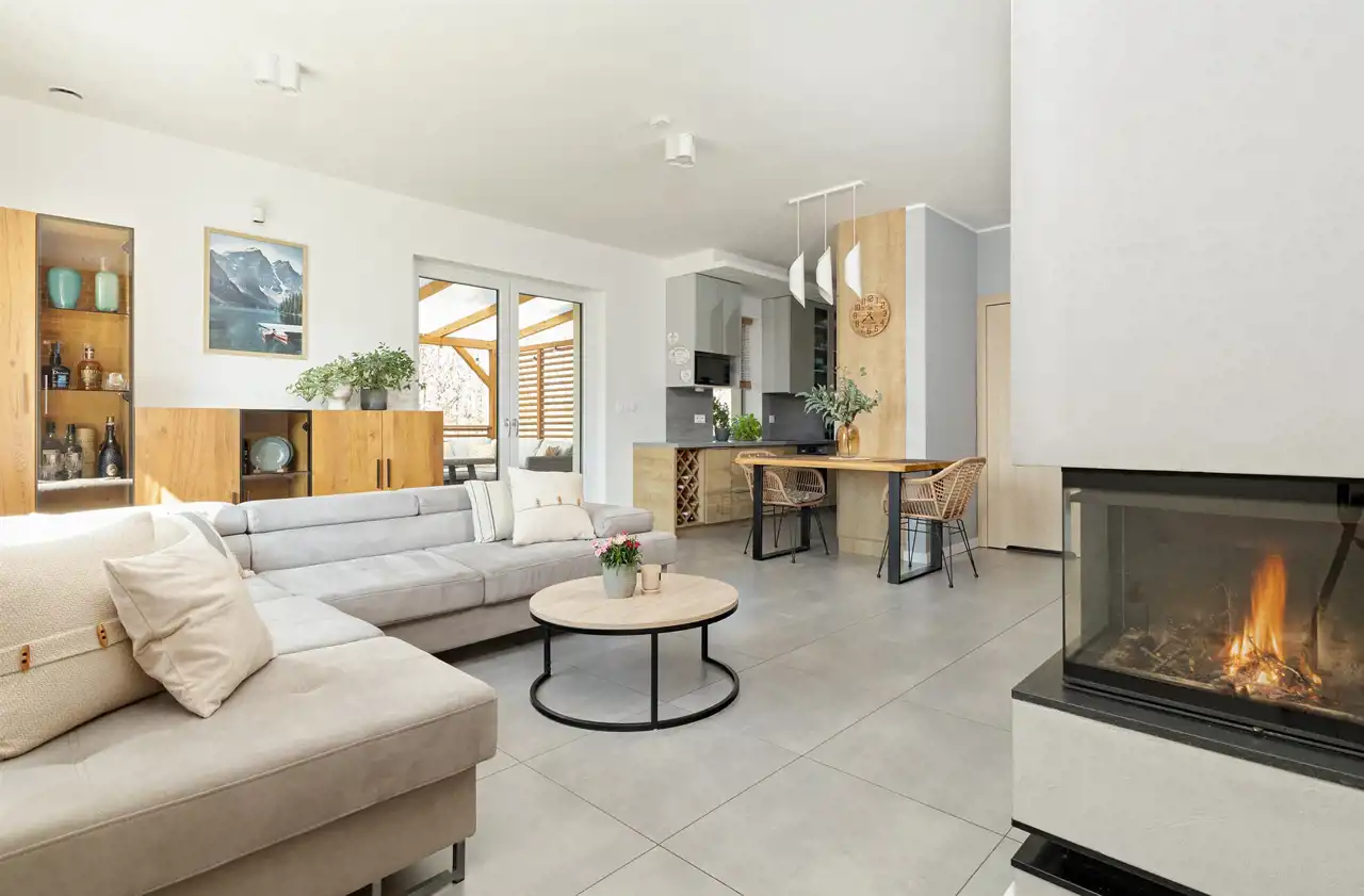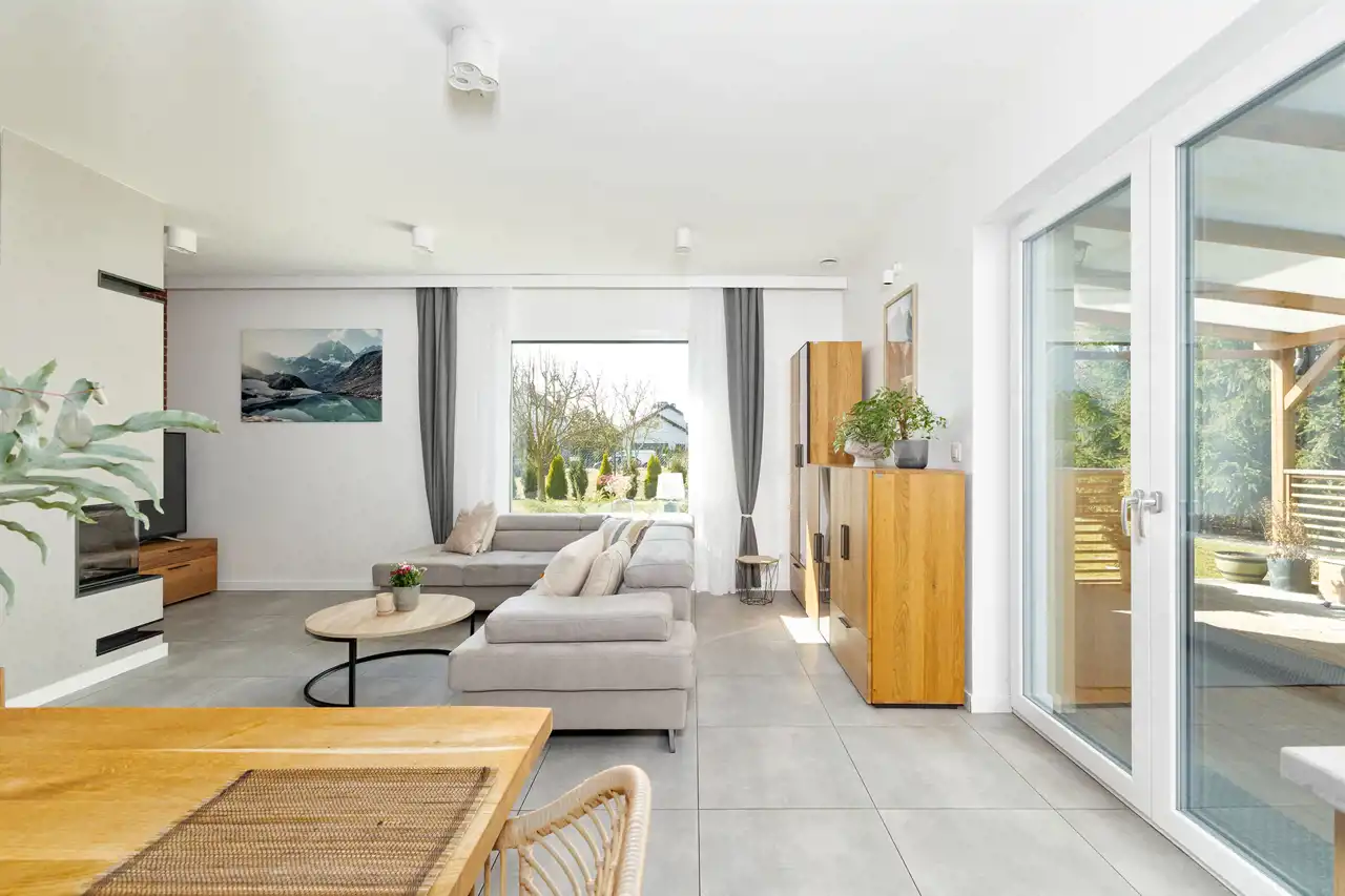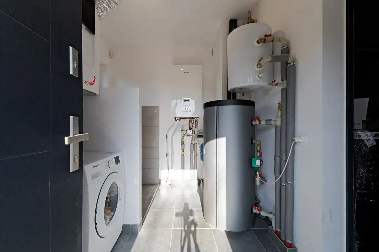 SYSTEM OGRZEWANIA: pompa ciepła /Panasonic/, do tego zastosowano wentylację mechaniczną z rekuperacją ciepła /Zehnder/ ze wspomaganiem rekuperacji przez gruntowy wymiennik ciepła. Ogrzewanie podłogowe /cały dom, także garaż/, panele fotowoltaiczne o mocy 10 kW /Solar Edge/ sterowane aplikacją z telefonu. Dodatkowo do wykorzystania zarówno latem (chłodzenie) jak i zimą (dogrzewanie - dodatkowa opcja) jest klimatyzacja /Daikin/.