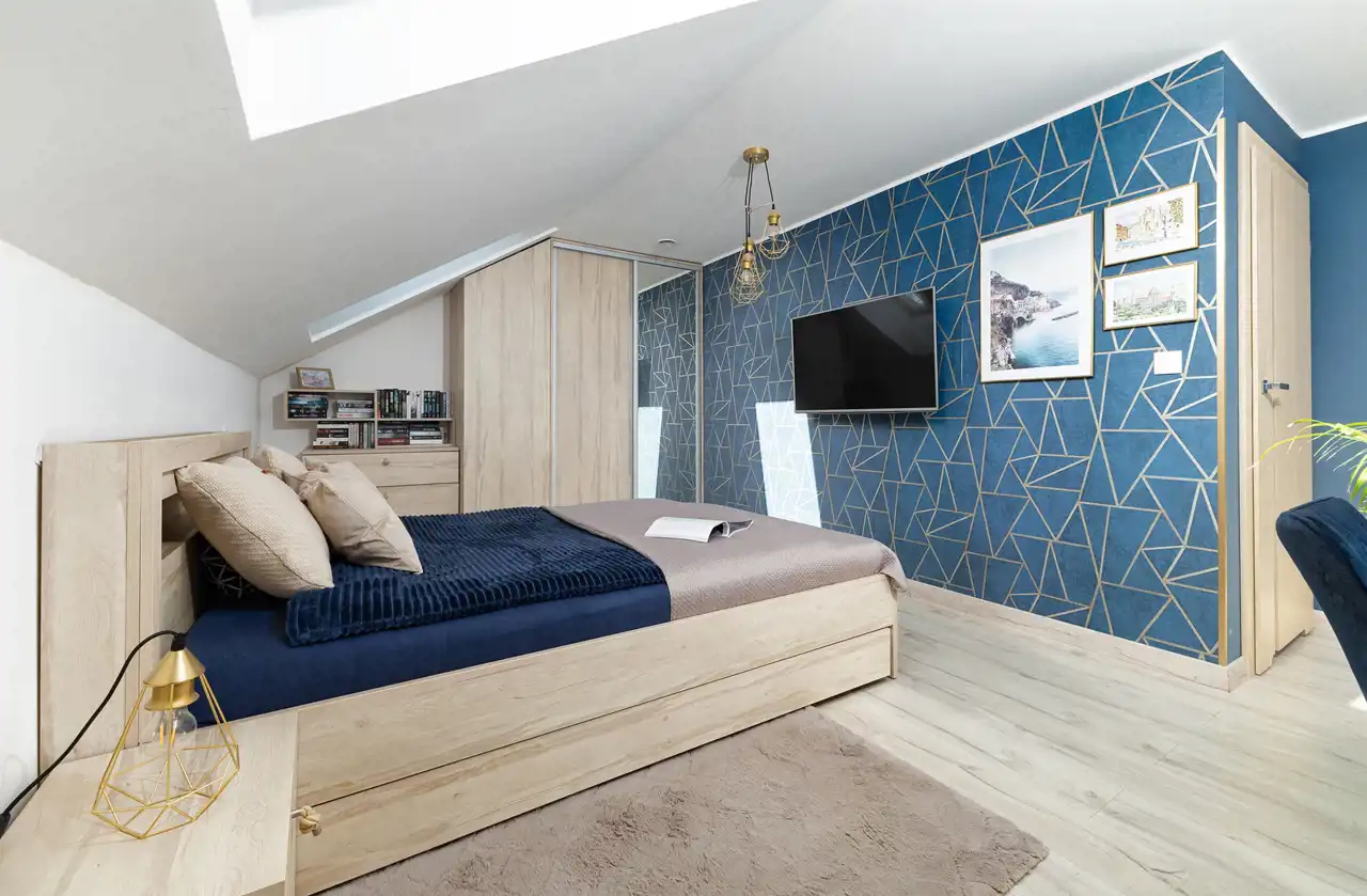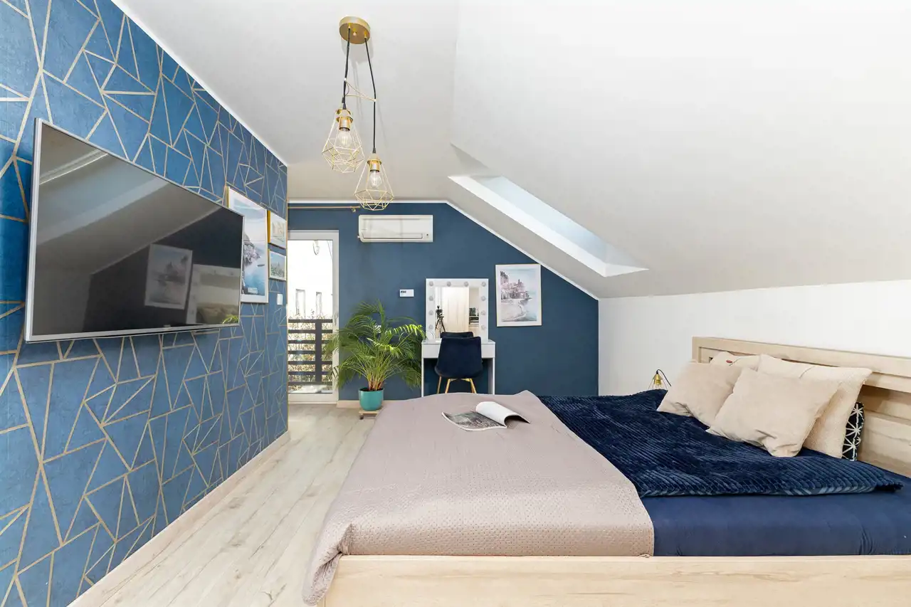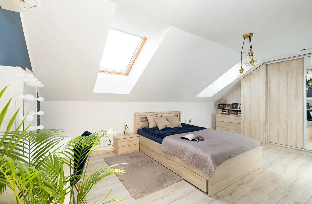 * trzy sypialnie, okna /Velux/, 1) sypialnia: 17,28 m², 2) sypialnia: 13,20 m², 3) sypialnia: 12,99 m²,