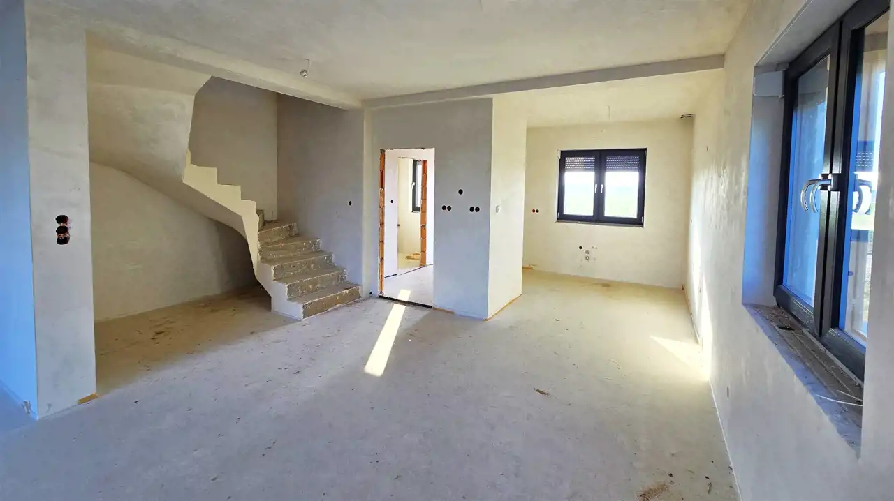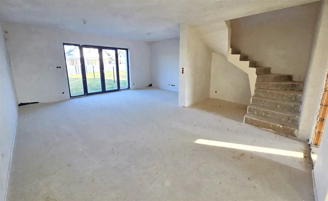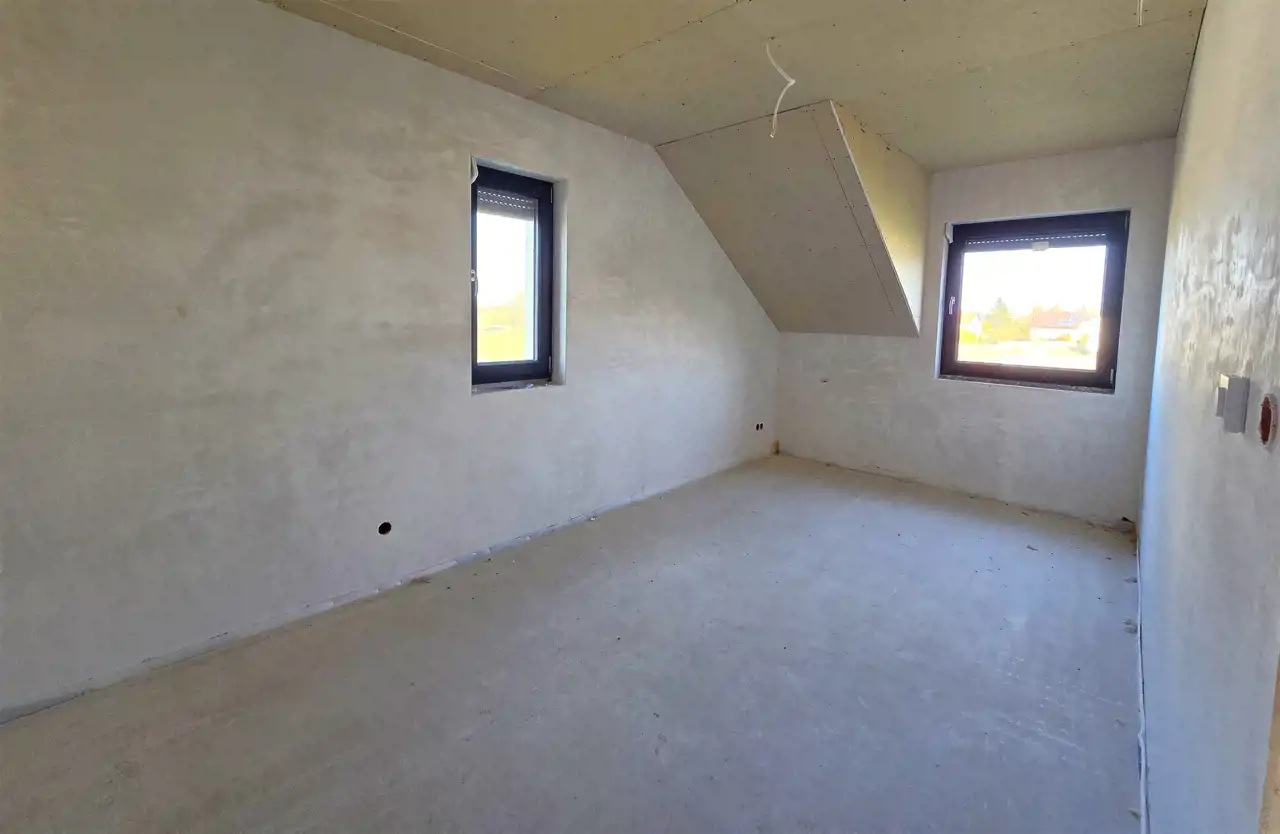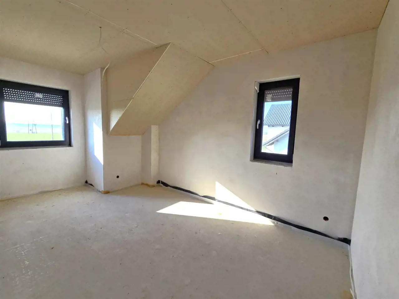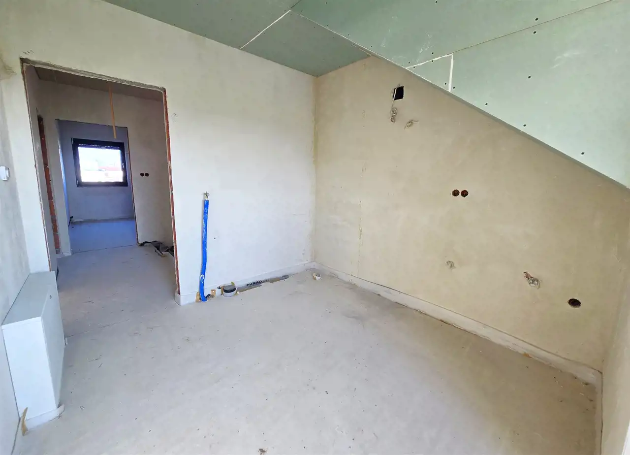 Nieruchomość składa się z 4 pokoi, salon z jadalnią i wyjściem na taras oraz 3 pokoi na poddaszu, częściowo otwartej kuchni, łazienki.