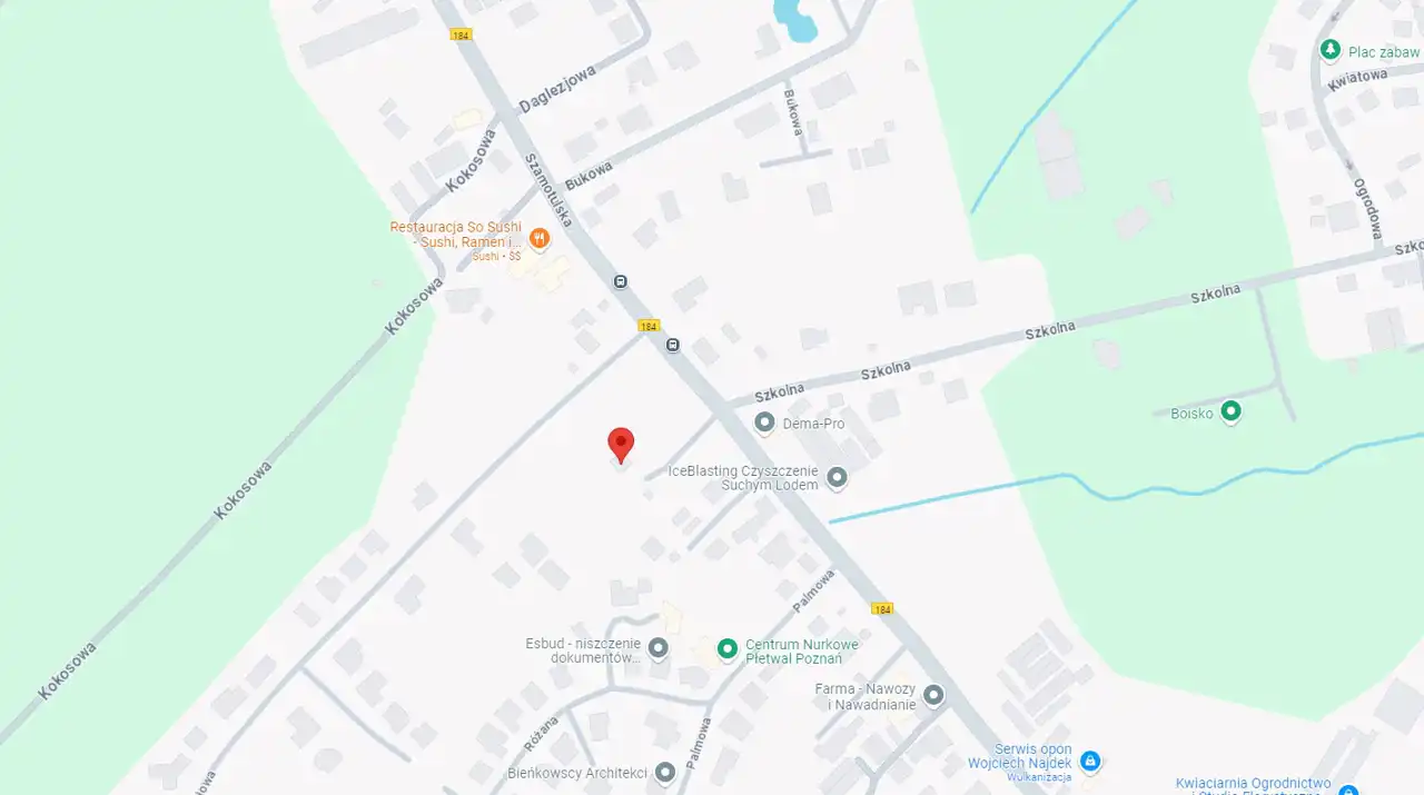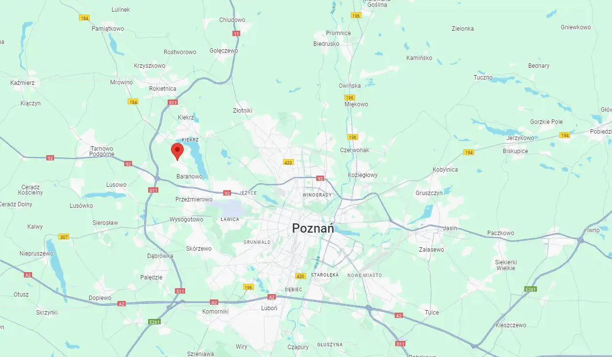 Działki znajdują się w miejscowości Chyby, jednej z najbardziej pożądanych lokalizacji w aglomeracji poznańskiej. Ul. Szamotulska zapewnia szybki dojazd do Poznania, zaledwie 15 minut samochodem do centrum miasta, co łączy komfort życia poza miastem z bliskością wszystkich udogodnień. W odległości zaledwie 500 metrów od działek znajdują się najbliższe sklepy, kawiarnie i restauracje, a także lokalne punkty usługowe. Do większych supermarketów oraz centrów handlowych dotrzesz w kilka minut. W pobliżu dostępne są również placówki edukacyjne – szkoły, przedszkola oraz przychodnie. Tereny rekreacyjne, m.in. Jezioro Kierskie, znajdują się w odległości około 1,5 kilometra, idealne na spacery, rowerowe wycieczki i sporty wodne.