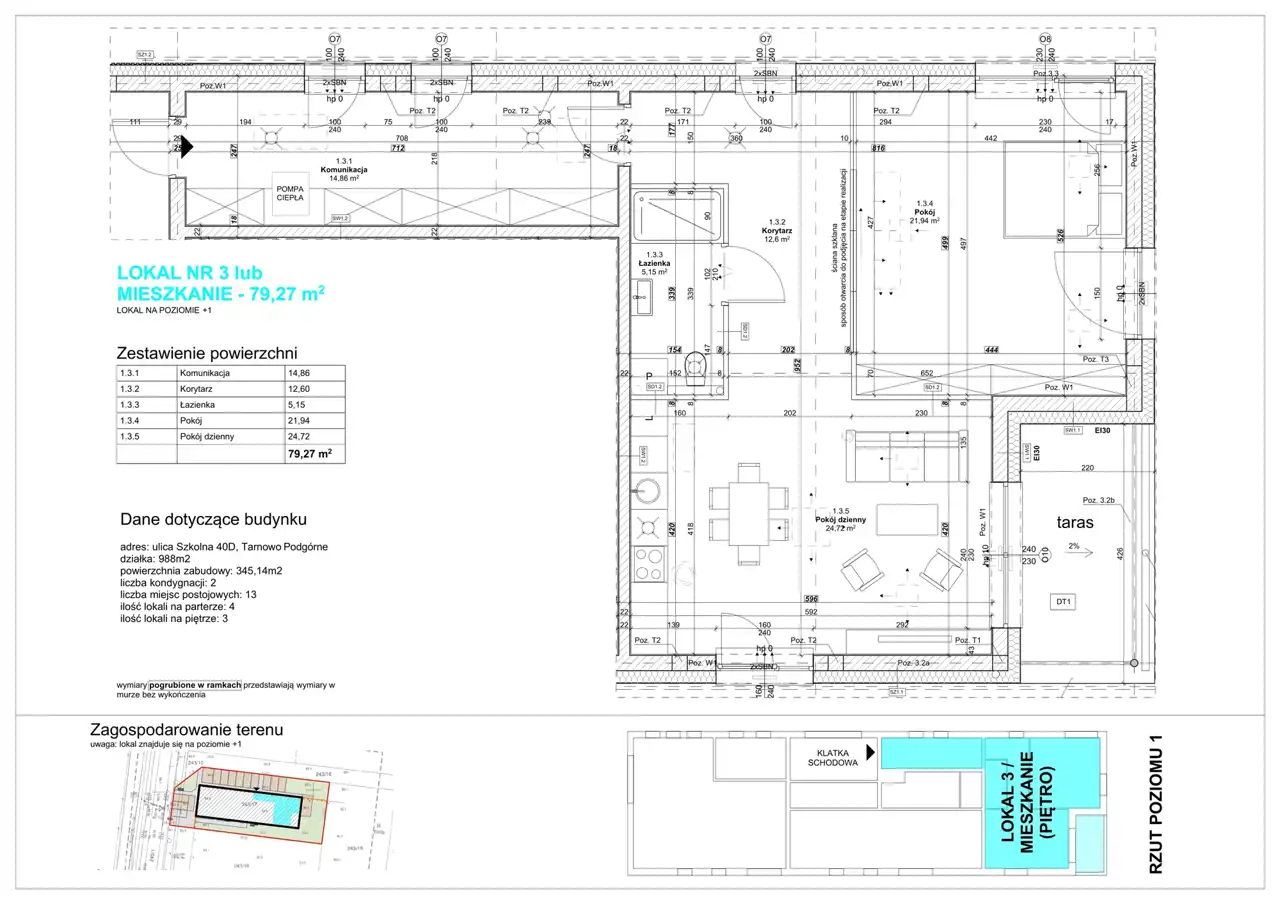 1)powierzchnia: 79,27 m2