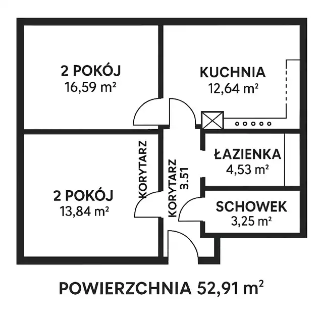 - Charakterystyka mieszkania 54.55 m2, 2 pokoje