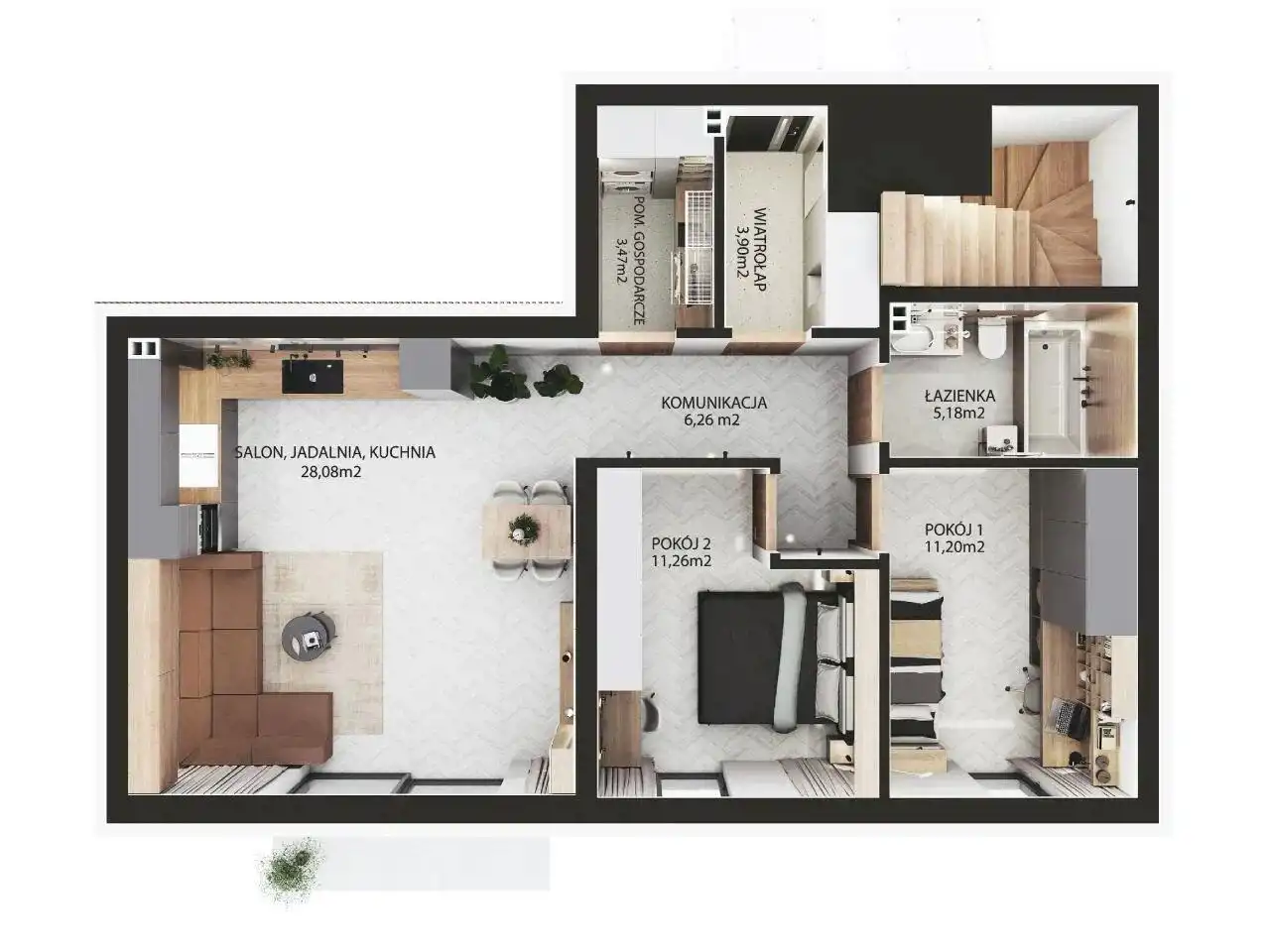 - Charakterystyka mieszkania 70 m2, 3 pokoje