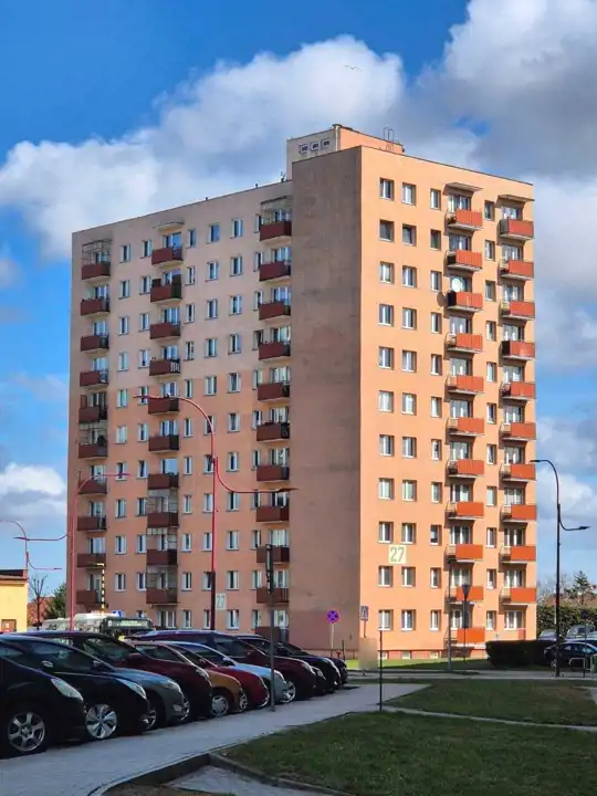 Wieżowiec z dwiema windami, zabezpieczony domofonem i dodatkowym monitoringiem. Przy budynku znajdują się miejsca parkingowe dla mieszkańców.