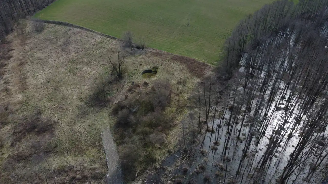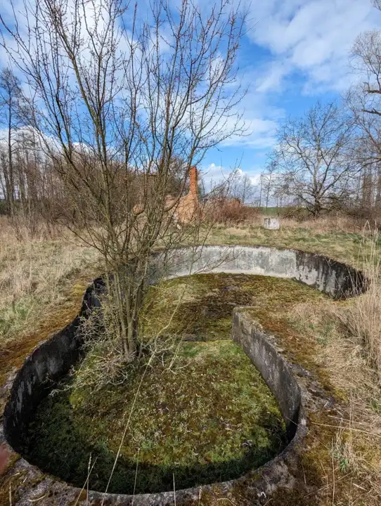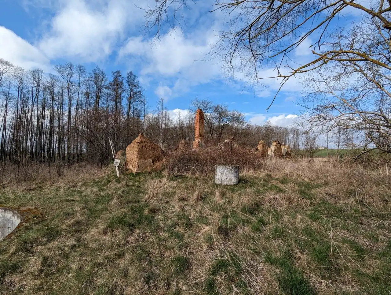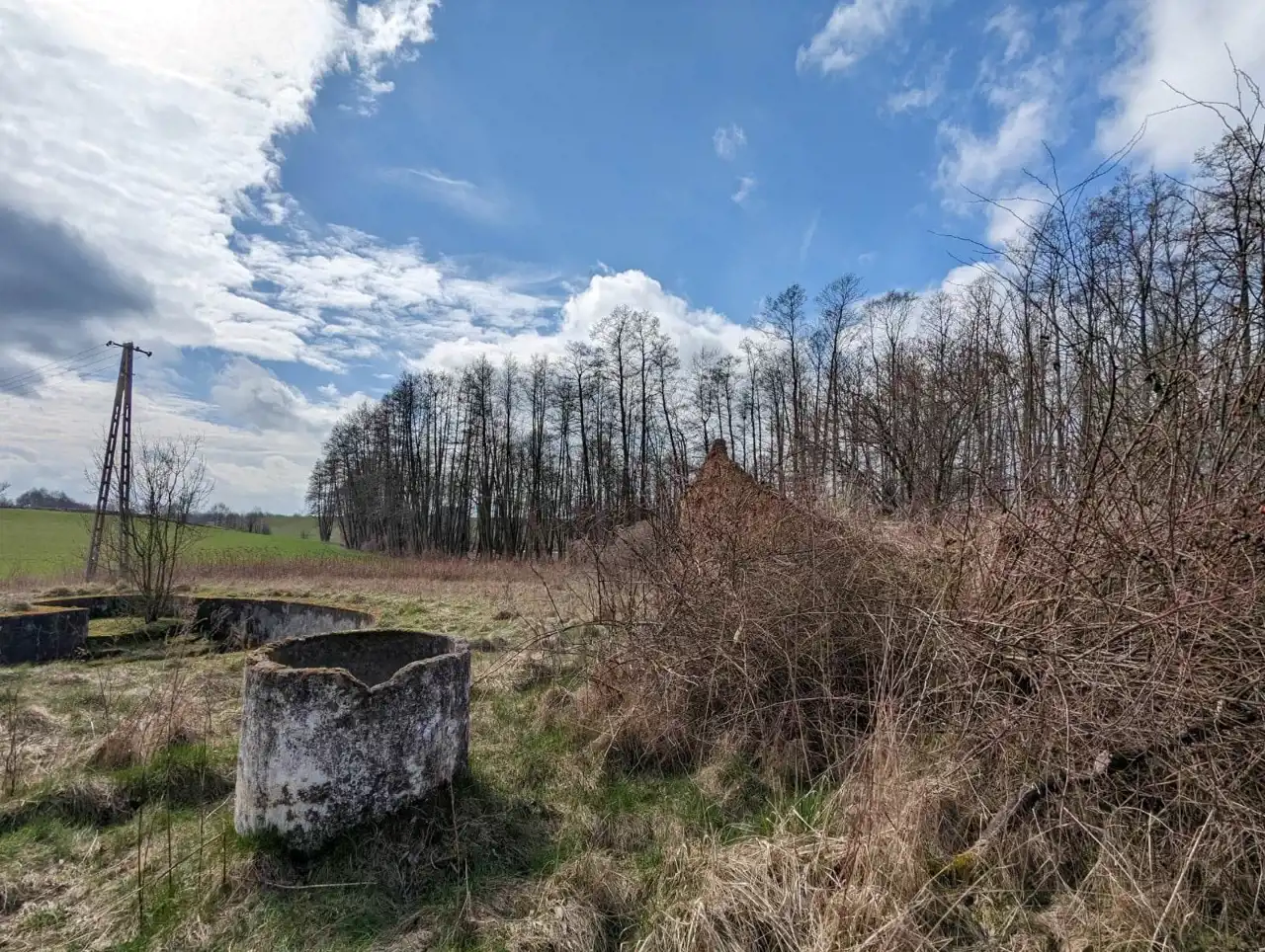 Na działce znajdują się pozostałości po dawnym gospodarstwie, wraz z wykopanym basenem.