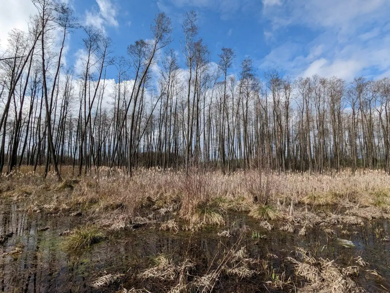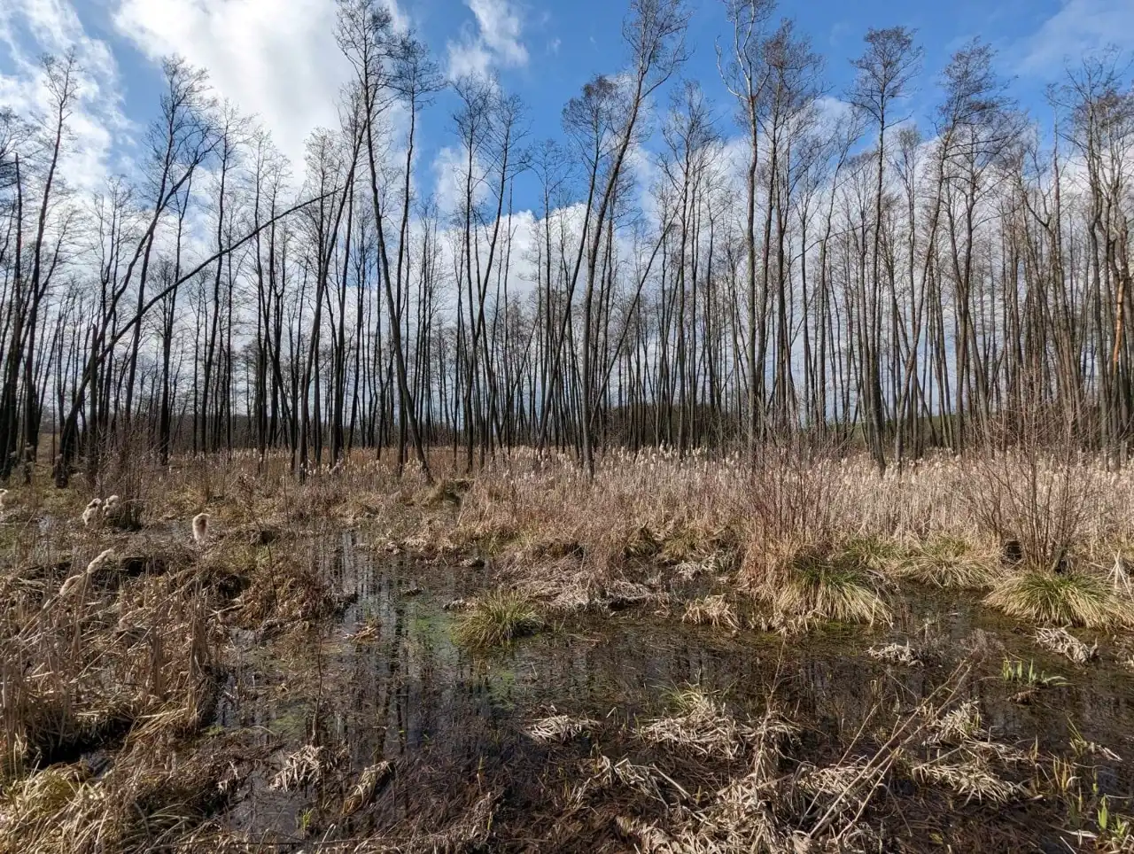 Położenie niedaleko mokradeł, porośniętych różnymi gatunkami drzew i krzewów oraz trzciną i innymi roślinami.