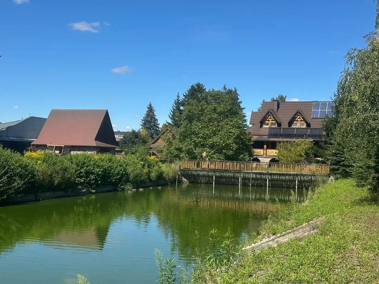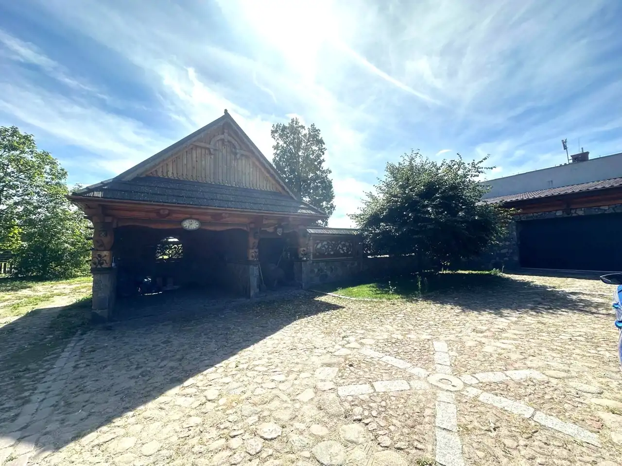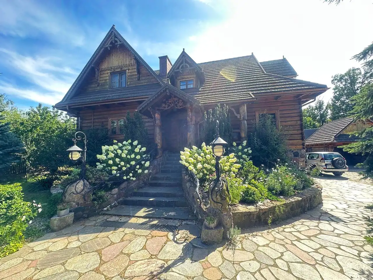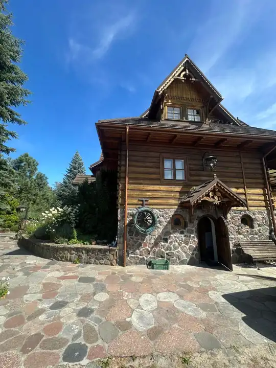 Na dużej działce o powierzchni 9164 m² znajduje się wyjątkowy dom z bali sosnowych. Nieruchomość zachwyca niepowtarzalnym klimatem, naturalnym zapachem drewna i pięknym otoczeniem z dużym, zarybionym stawem.