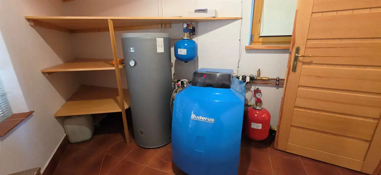 - Media Ogrzewanie: olejowe; Woda: ciepła - piecyk gazowy; Kanalizacja: szambo; Prąd: w budynku