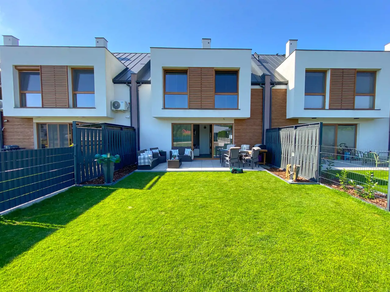 Oferujemy nowoczesny dom jednorodzinny w zabudowie szeregowej, położony przy spokojnej i cichej ulicy Pistacjowej, w otoczeniu domów jednorodzinnych. Lokalizacja zapewnia prywatność, dostęp do terenów zielonych oraz wygodny dojazd do centrum miasta.