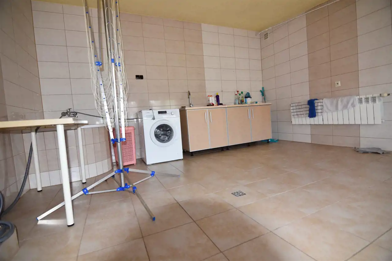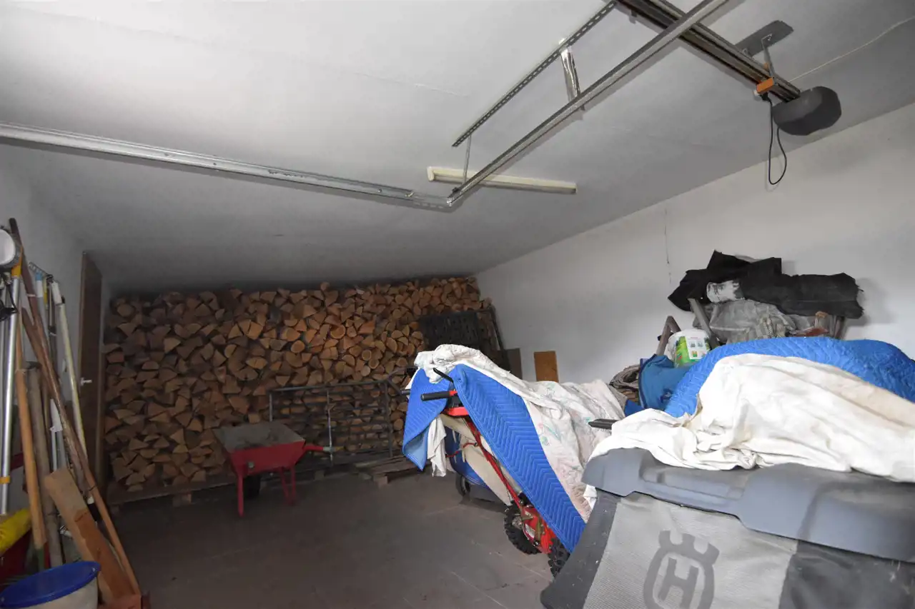 Przestronny garaż z możliwością parkowania kilku pojazdów lub wykorzystania jako zaplecze warsztatowe.