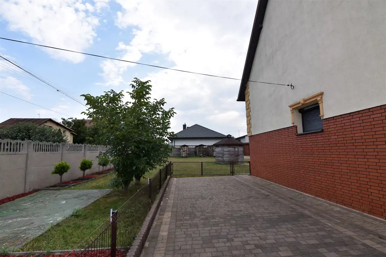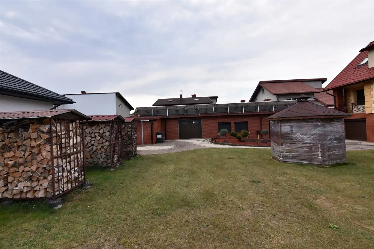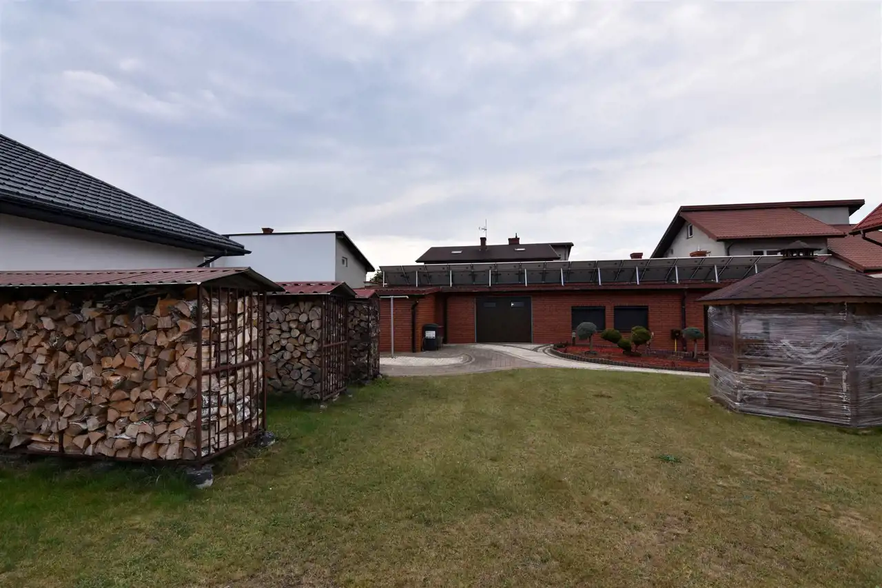 Działka w całości ogrodzona, z reprezentacyjną bramą wjazdową i wygodnym podjazdem wyłożonym kostką brukową. Zabudowania tworzą funkcjonalną całość z przemyślanym podziałem na strefy.