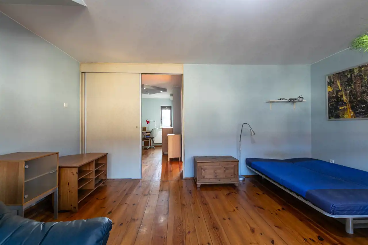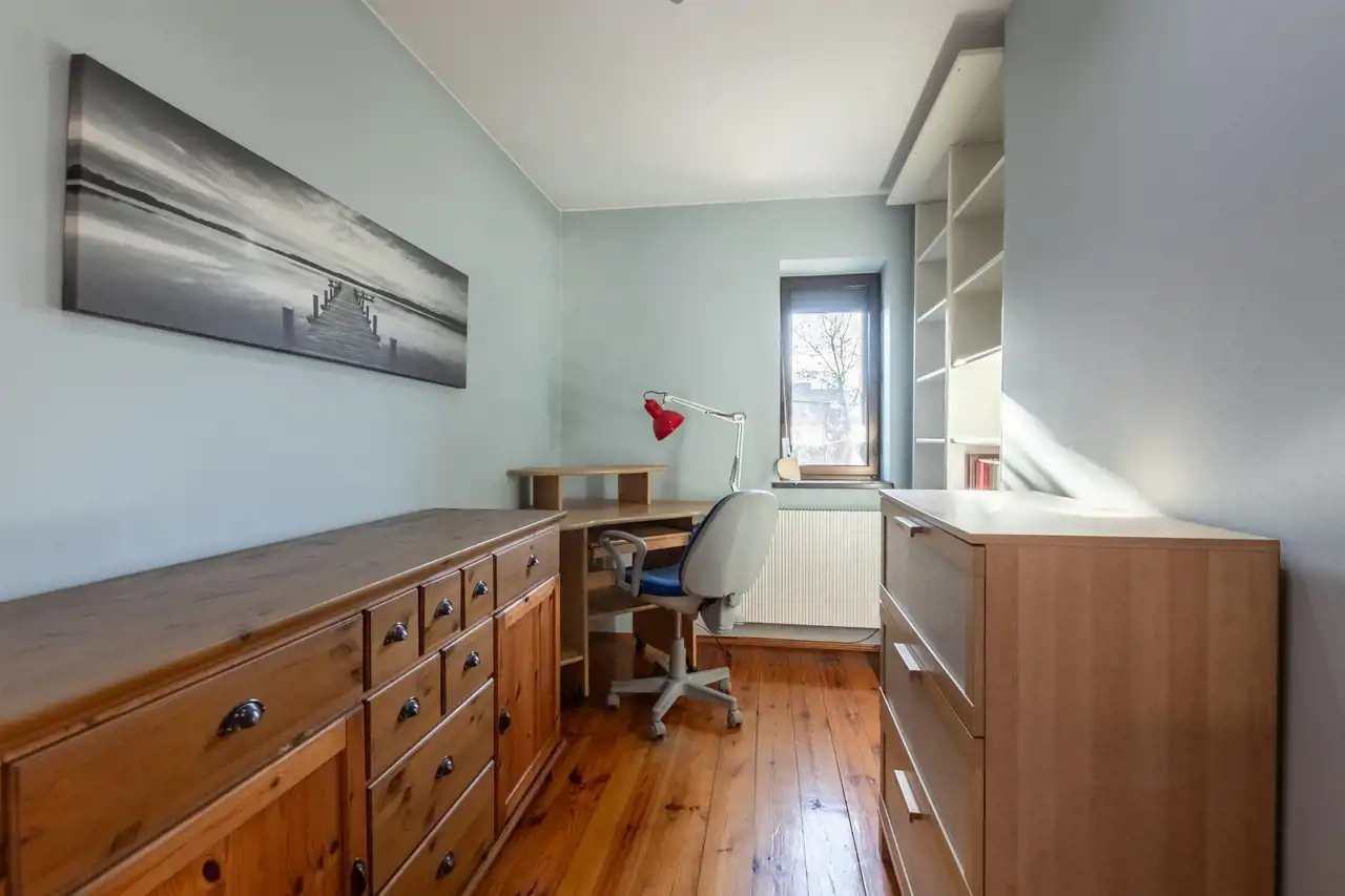 W całym domu podłogi drewniane, w częściach korytarzowych, kuchni podłoga w płytkach.