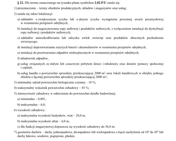 Działki objęte są miejscowym planem zagospodarowania przestrzennego z przeznaczeniem pod zabudowę produkcyjną, magazynową i usługową, co znacząco ułatwia i przyspiesza proces uzyskiwania decyzji administracyjnych, w tym pozwolenia na budowę.