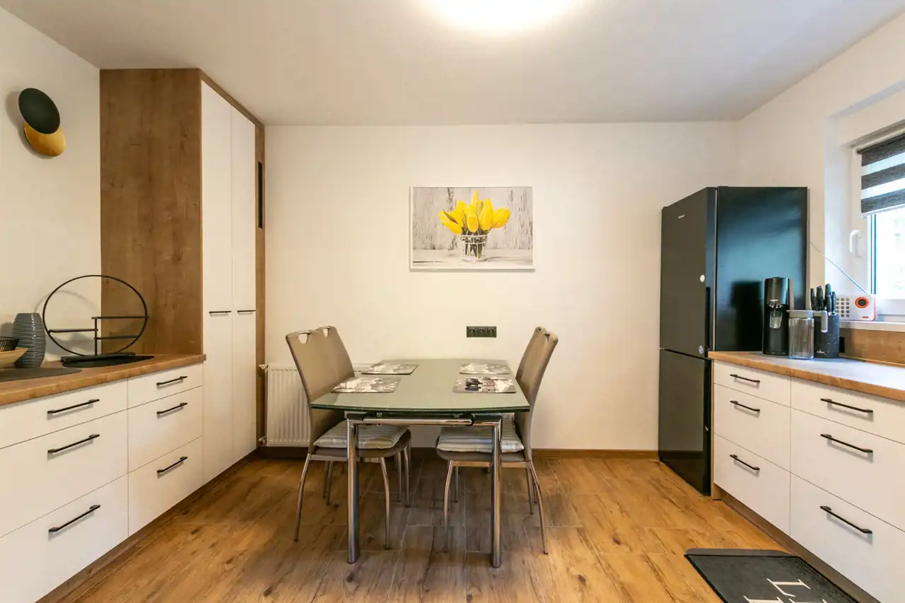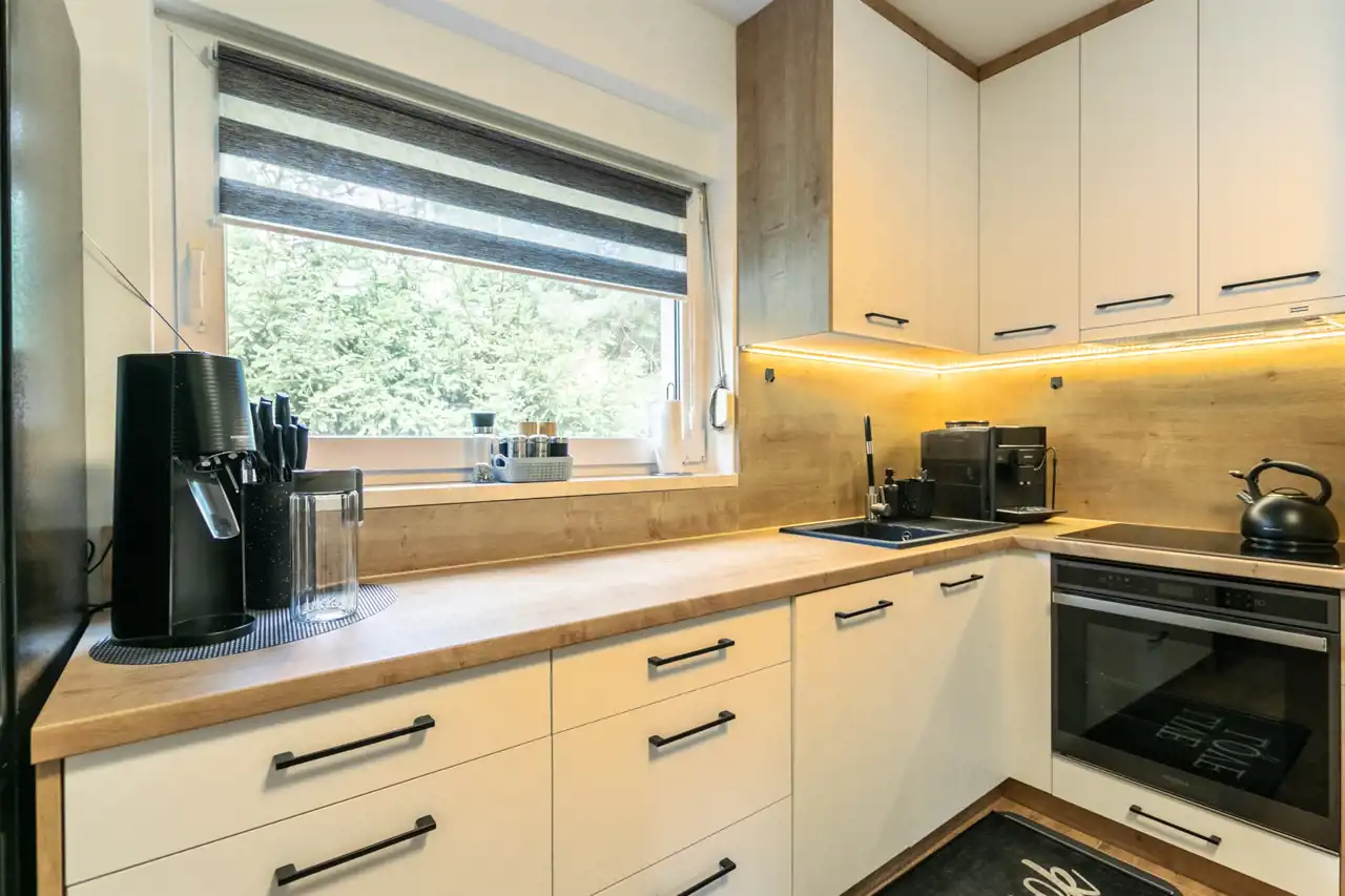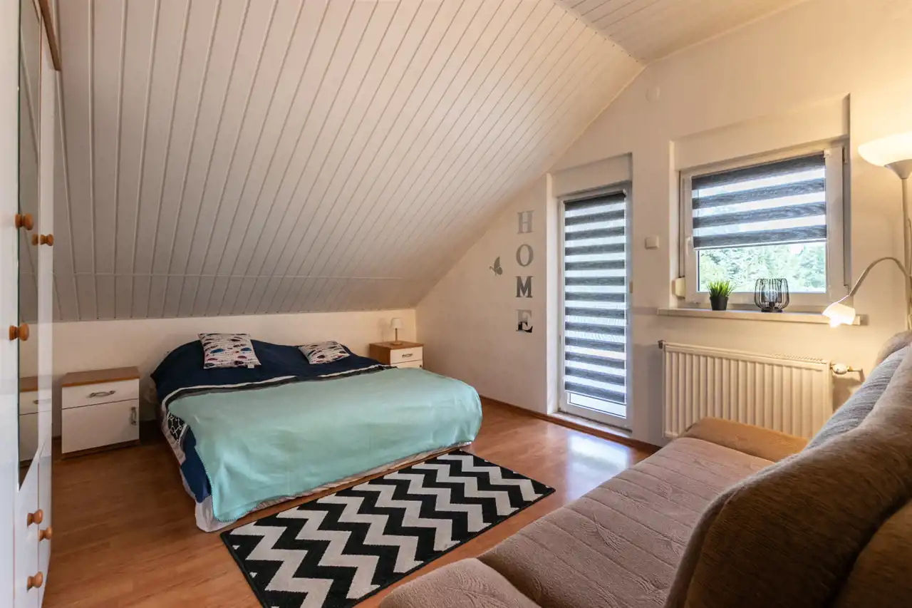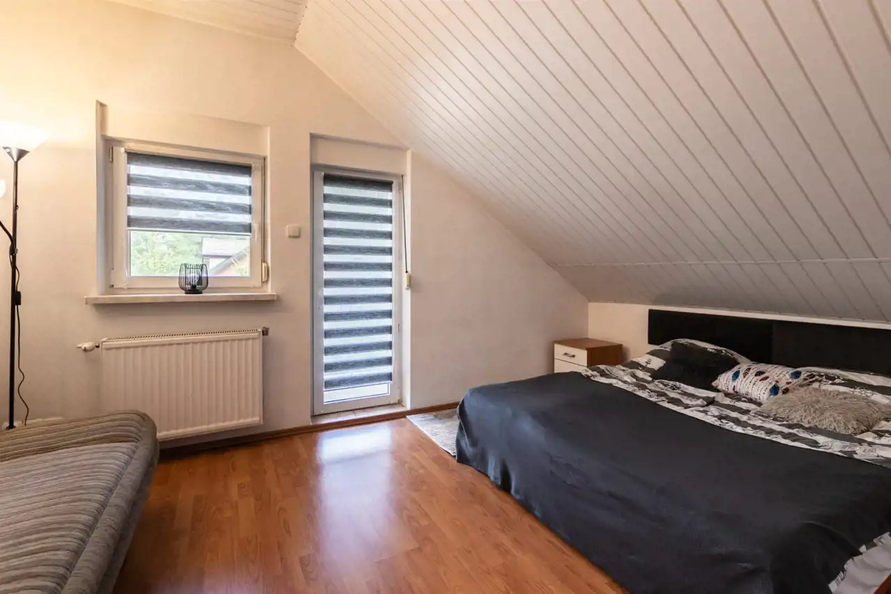 - 3 sypialnie ( 2 z wyjściem na taras z pięknym widokiem na zalew i las)