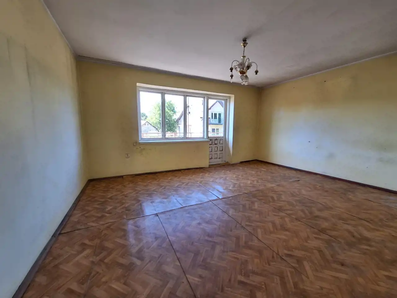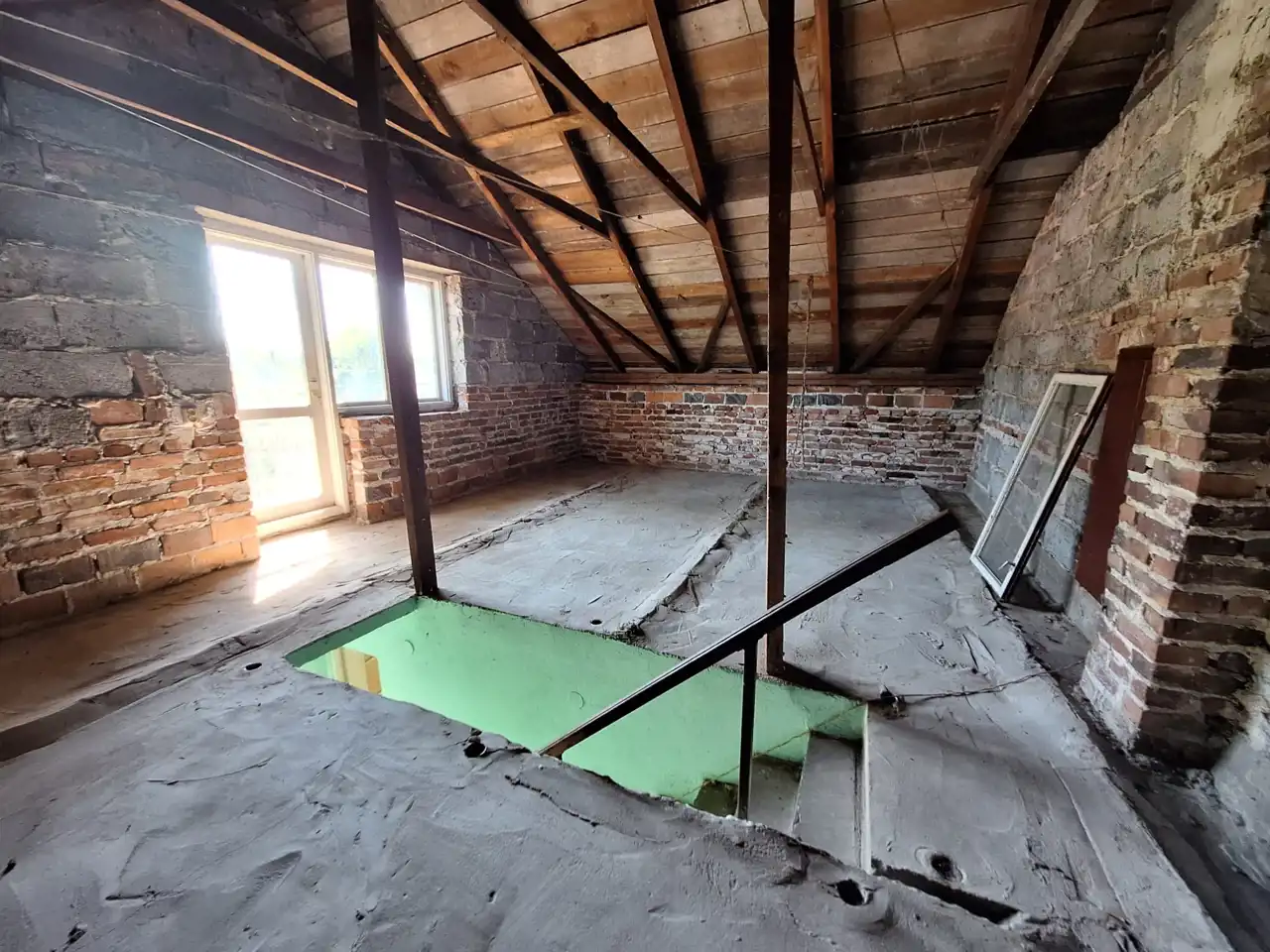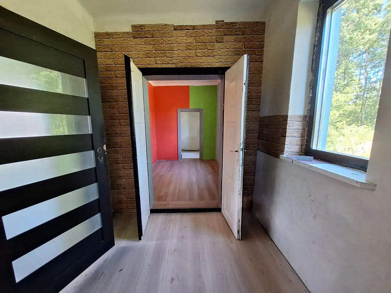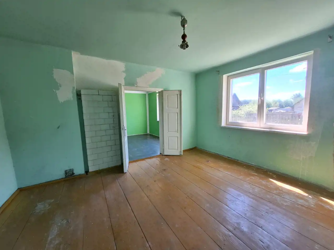 Dom to trzy pokoje, kuchnia i łazienka, przedpokój, pomieszczenie gospodarcze oraz strych.