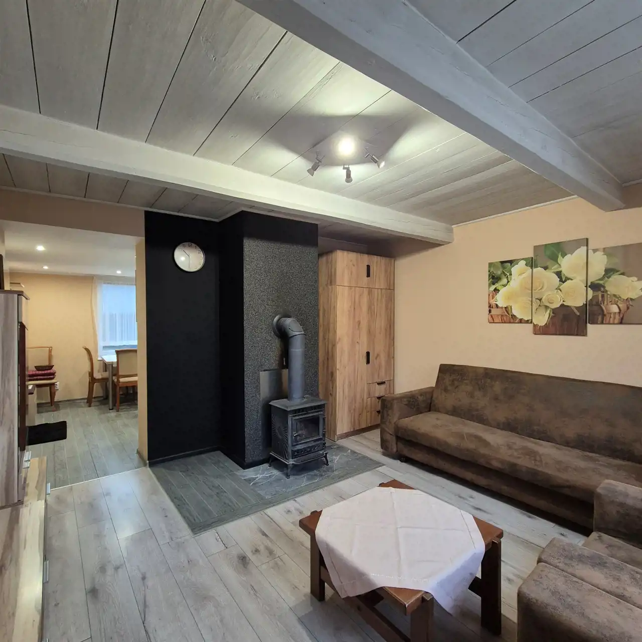 Okna PCV. Ogrzewanie kominkowe (palone drewnem liściastym, dębina, brzoza).