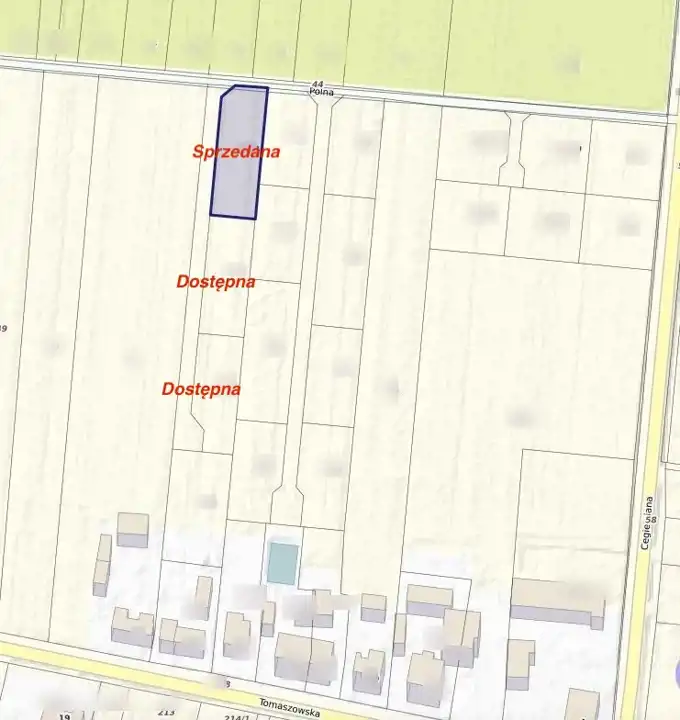 Nieruchomości posiadają aktualne warunki zabudowy, a także gotowe projekty na domy wolnostojące oraz garaże, co znacząco ułatwia rozpoczęcie inwestycji. Działki znajdują się przy ul. Polnej a media są w drodze przy ul Tomaszowskiej, pozwolenie na podłączenie prądu obowiązuje do końca 2025 roku. W pobliżu znajduje się przedszkole oraz pętla autobusowa, co zapewnia komfortowy dostęp do komunikacji publicznej oraz wygodę codziennego życia. Idealna propozycja dla osób szukających spokojnej lokalizacji z dobrym dostępem do infrastruktury miejskiej.
