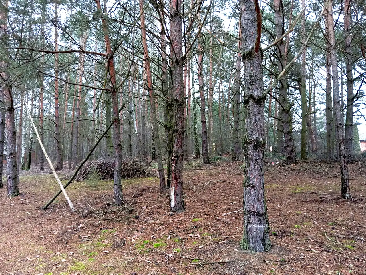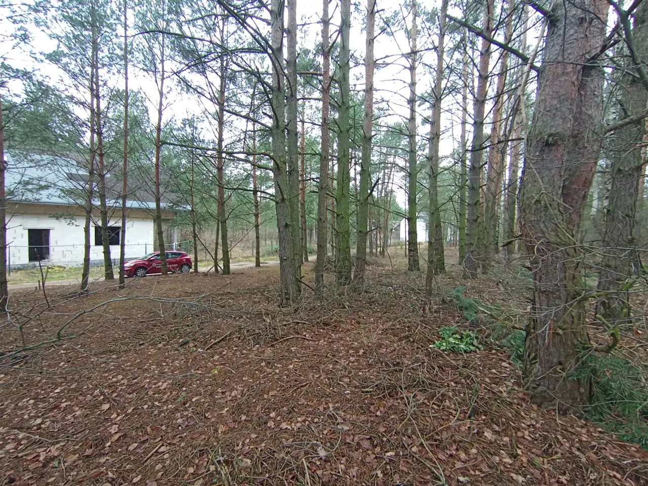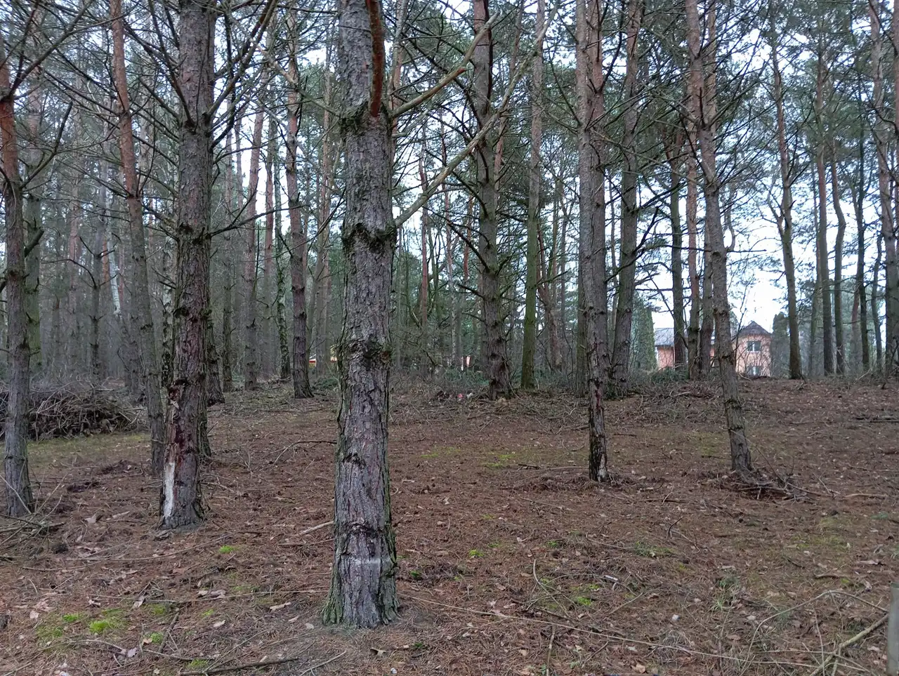 - Działka w dużej części zalesiona ( sosna), dodająca naturalnego charakteru i prywatności.